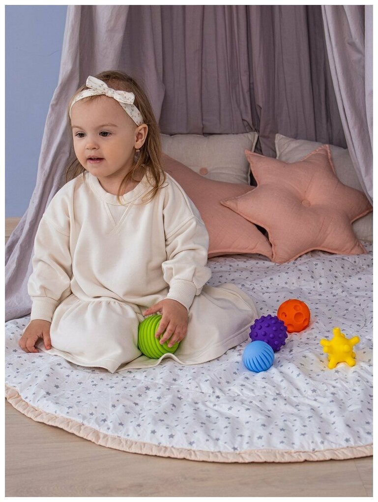 Набор развивающих игрушек для малышей - незаменимый подарок для комплексного развития малыша. Всевозможные выпуклости, рельефы пробуждают в малыше любопытство и интерес, стимулируя его сжимать мячики, которые очень приятны на ощупь и отлично ложатся в детскую ручку.