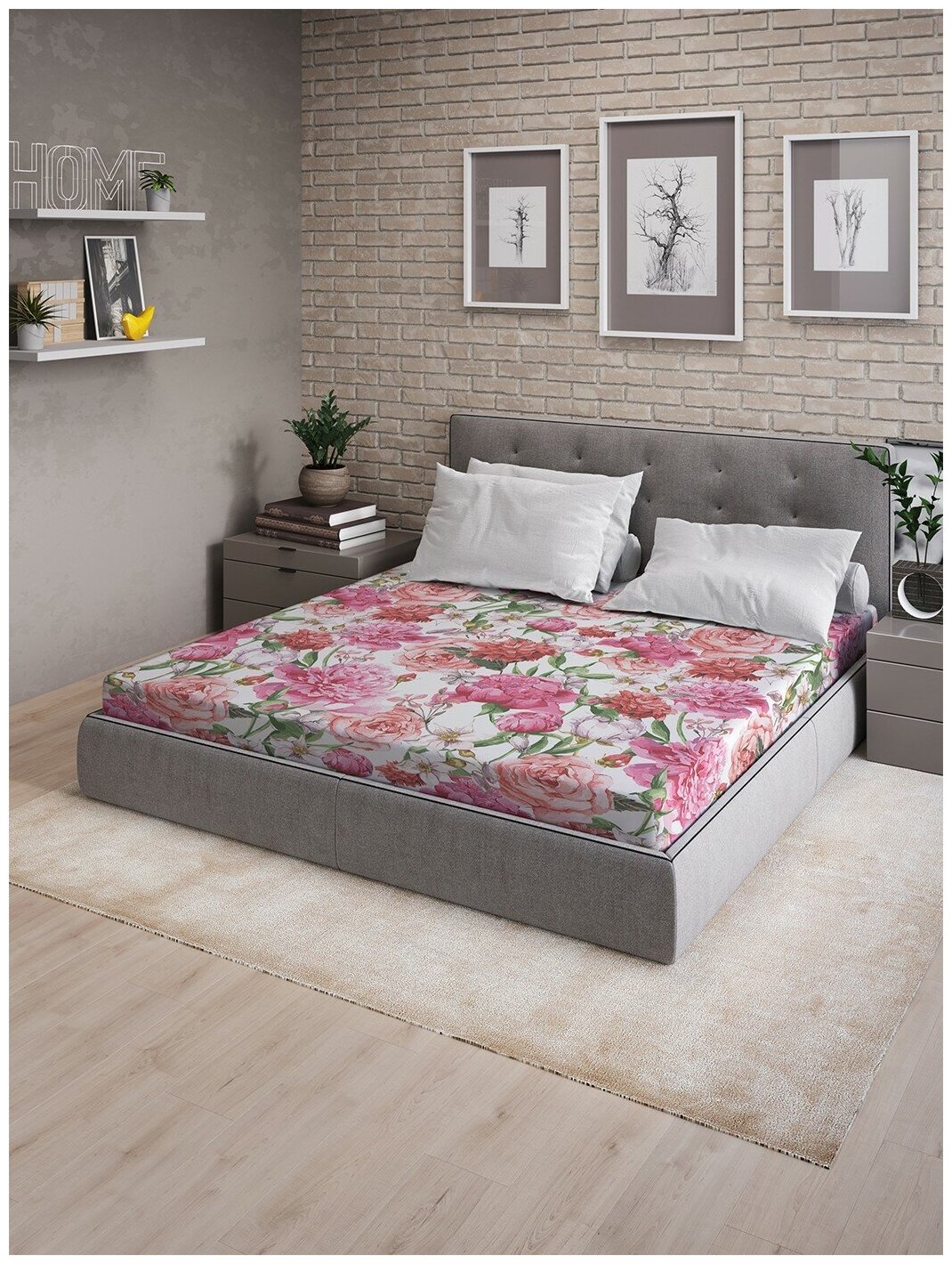 Модель: Натяжная простыня на двуспальную кровать Теплые оттенки роз 200х180 см