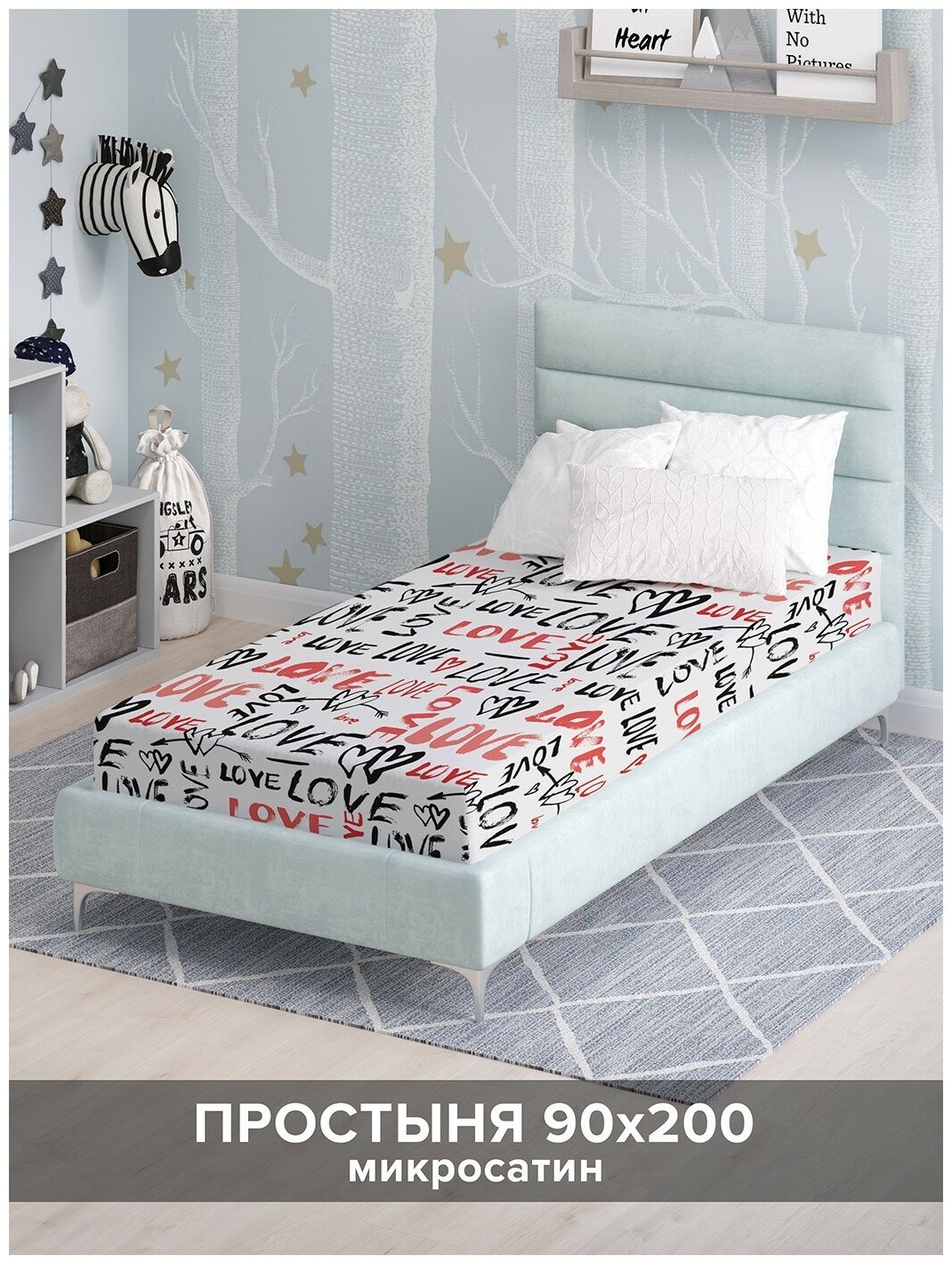 Модель: Натяжная простыня на двуспальную кровать Только любовь 200х180 см