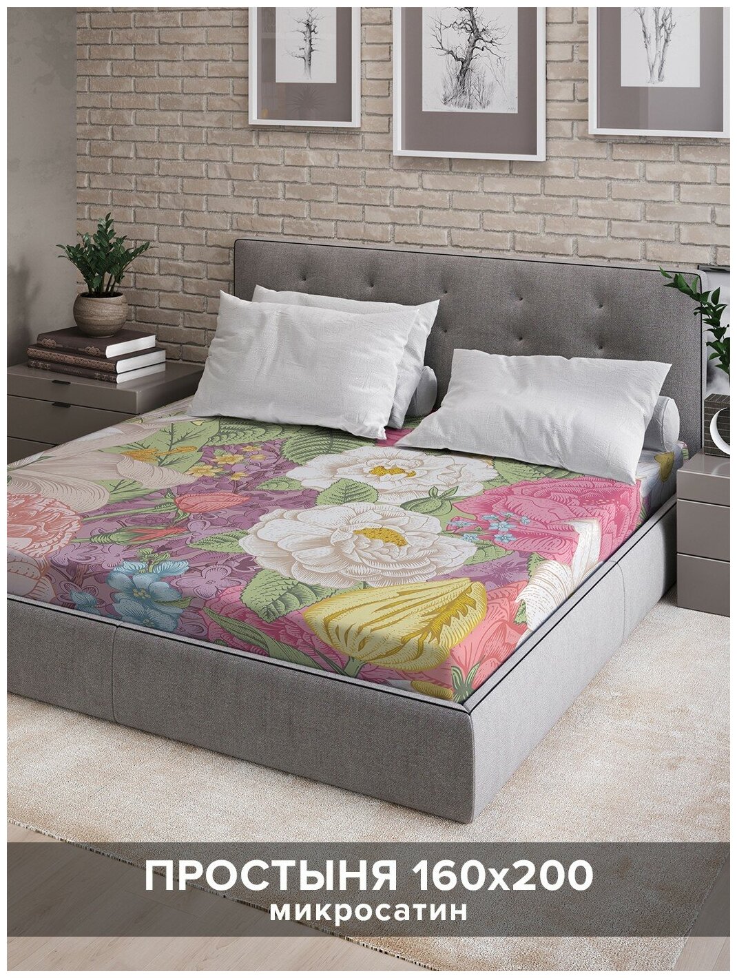 Модель: Натяжная простыня на двуспальную кровать Цветочная картина 200х160 см