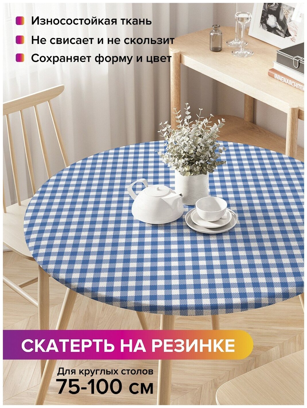 Круглая кухонная скатерть на резинке JoyArty на круглый стол диаметром 75-100 см. Скатерть на кухонный стол Виндзорская клетка 100-75 см