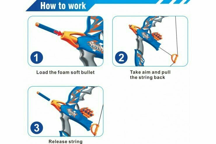 | Комплектация | лук, 10 снарядов, 10 пуль с присосками |
