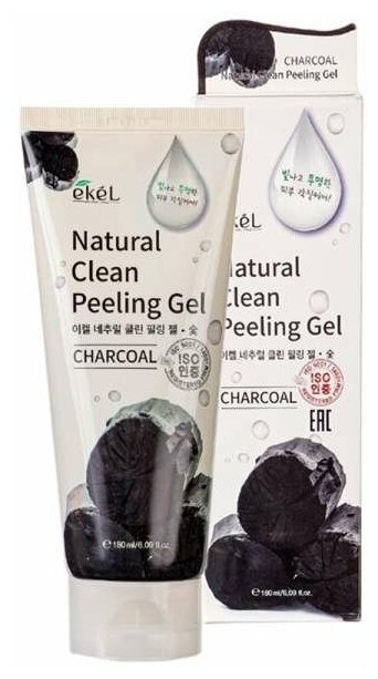 Пилинг-гель для лица с экстрактом древесного угля Ekel Peeling Gel Charcoal 180 мл Пилинг-скатка с древесным углем Natural Clean peeling gel Charcoal 180 мл