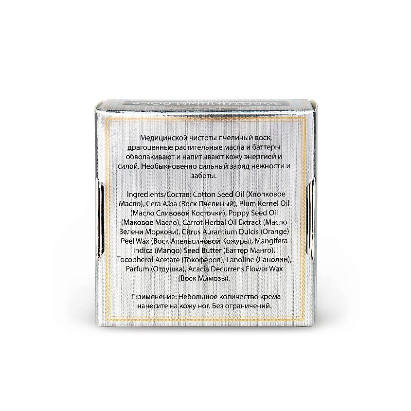 Медицинской чистоты пчелиный воск, драгоценные растительные масла и баттеры обволакивают и напитывают кожу энергией и силой. Необыкновенно сильный заряд нежности и заботы.