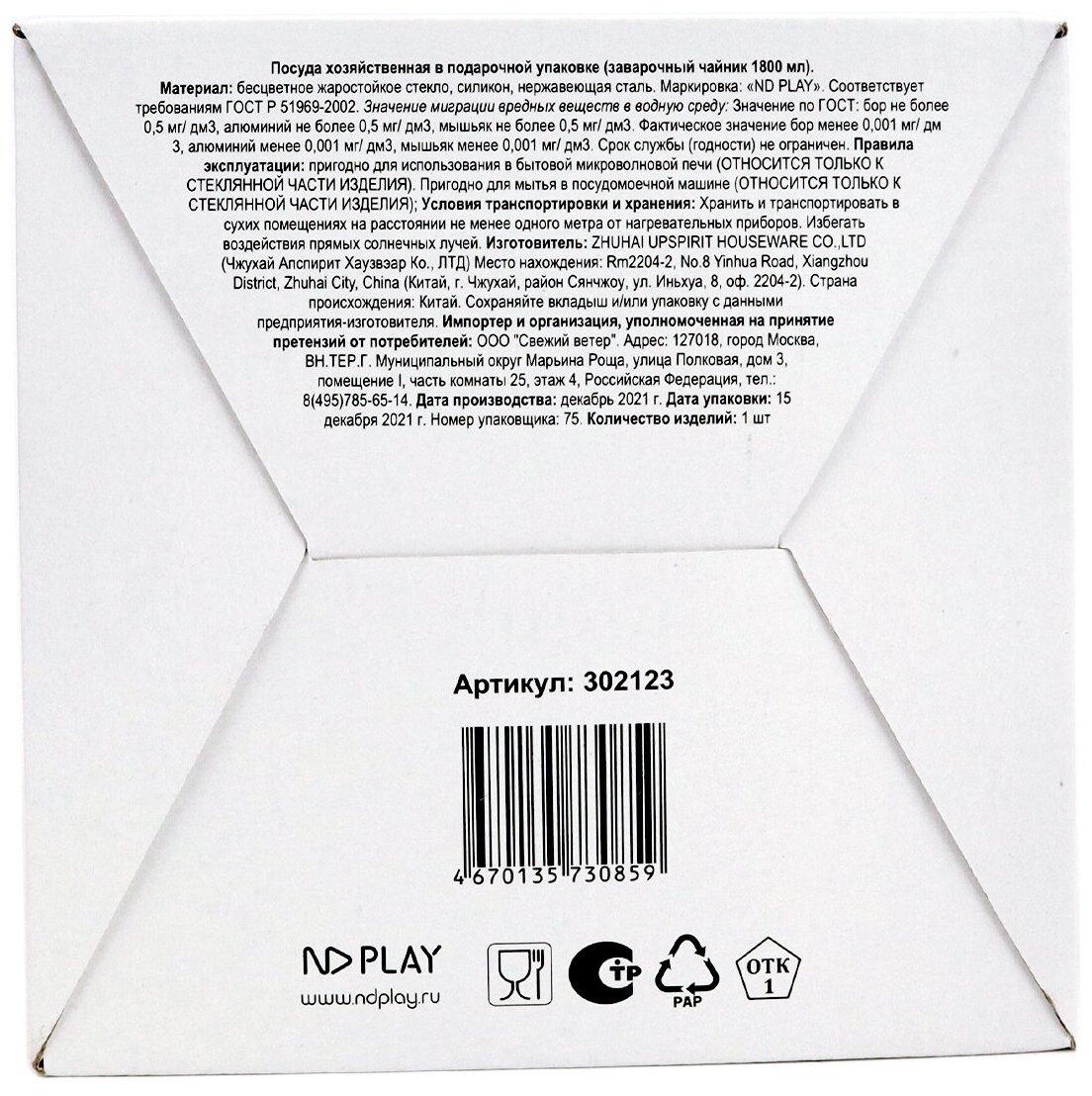 Сервис сравнения цен СкидкаГИД предлагает сравнить цены на товар «Чайник заварочный ND Play Заварочный чайник с металлической крышкой в подарочной упаковке стекло 1800 мл»