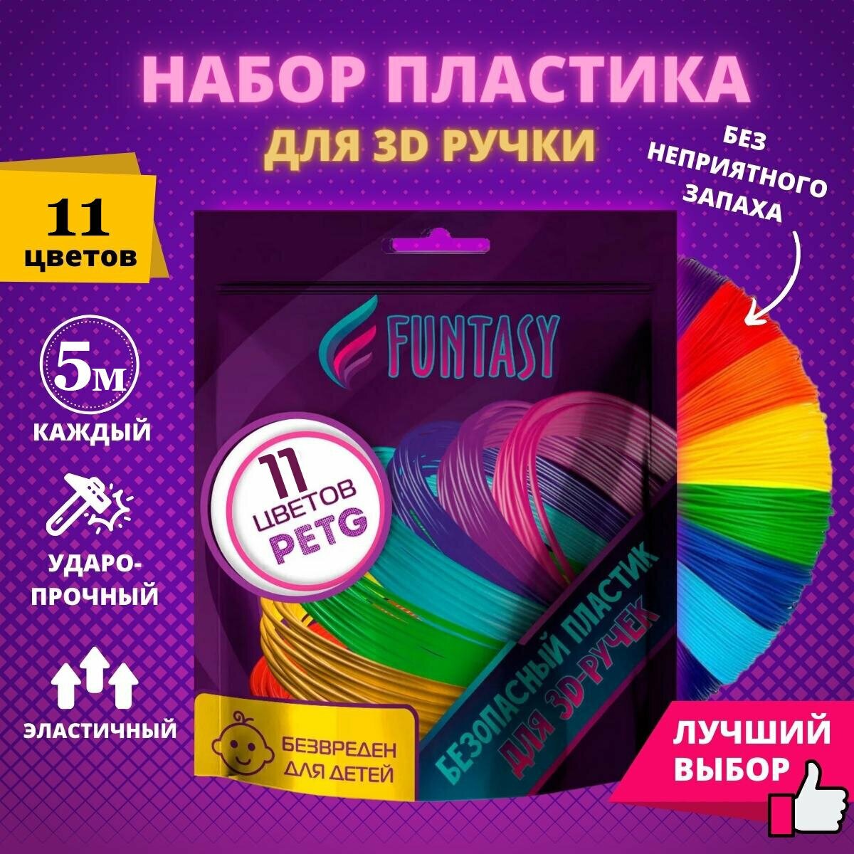 На сегодняшний день товар «Набор PETG-пластика Funtasy для 3д ручек 11 цветов по 5 м. PETG-SET-11-5 Набор PETG-пластика для 3D-ручек 11 цветов по 5 метров» можно купить с кешбеком в 1 магазине: Яндекс.Маркет