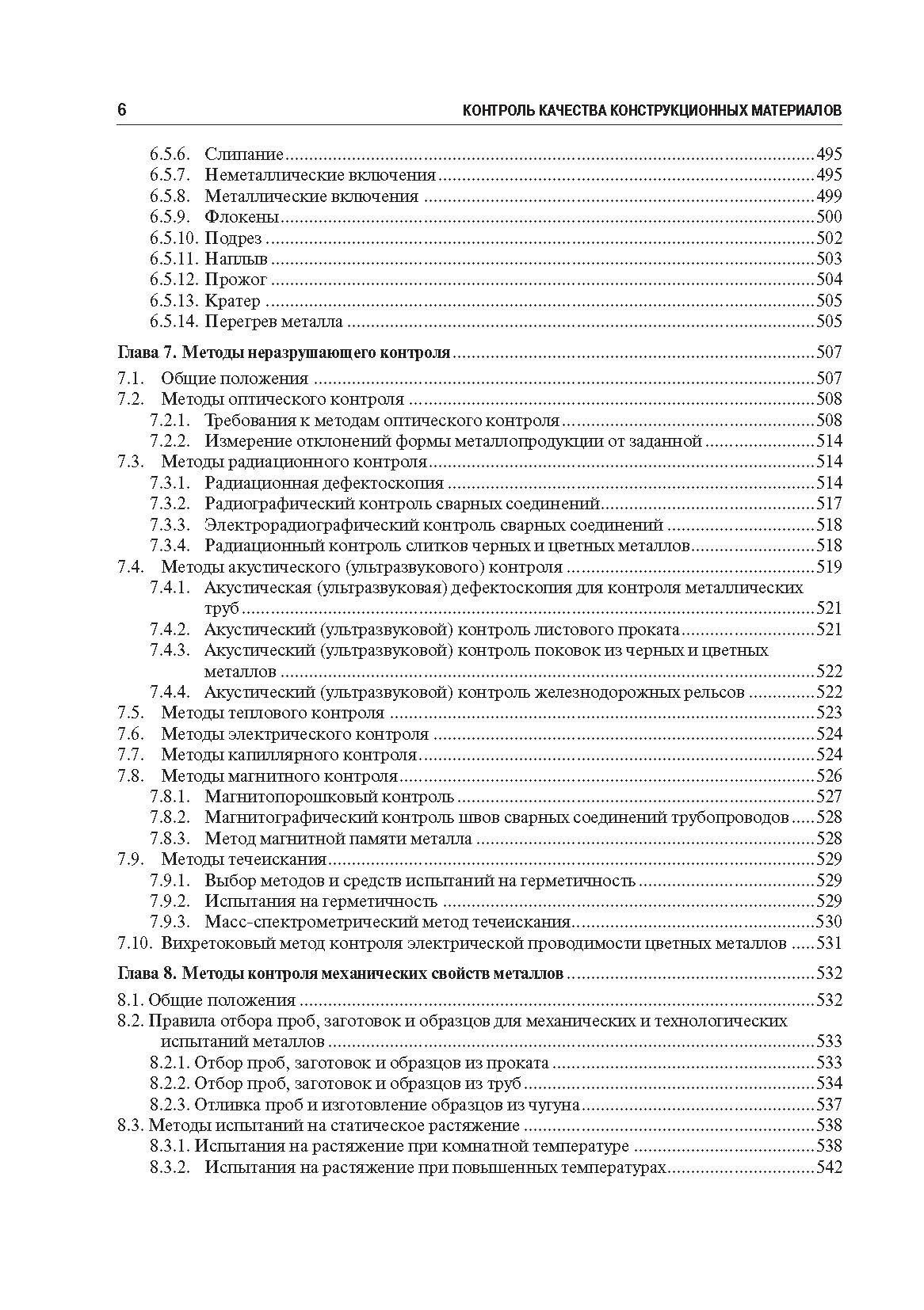 Обобщены результаты научно-исследовательских и производственных работ в области металловедения. Подробно описаны современные стандартные (с указанием ГОСТов) и нестандартные методы контроля механических, технологических, физических, коррозионных свойств, химического состава материалов, качества покрытий, износостойкости конструкционных металлических материалов (стали, чугуны, алюминиевые, медные, никелевые, титановые, магниевые сплавы, порошковые и наноматериалы), их сварных и паяных соединений. Систематизированы сведения о характерных дефектах конструкционных металлов (стали, алюминиевые, титановые, никелевые сплавы). Приведен атлас-классификатор изломов конструкционных сталей. Описаны морфология дефектов, условия и причины их образования, способы предупреждения или исправления, влияние на свойства. Даны схемы диагностики причин разрушения деталей в условиях эксплуатации.