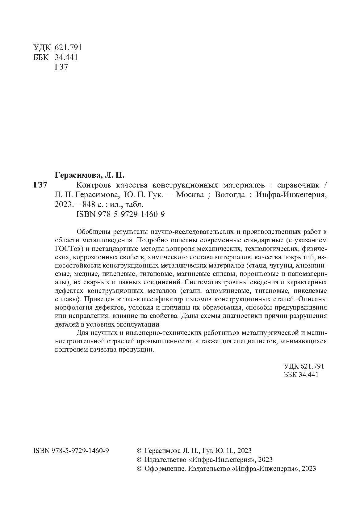 Контроль качества конструкционных материалов. Справочник (Герасимова Лилия Петровна, Гук Юрий Петрович); Инфра-Инженерия, 2023