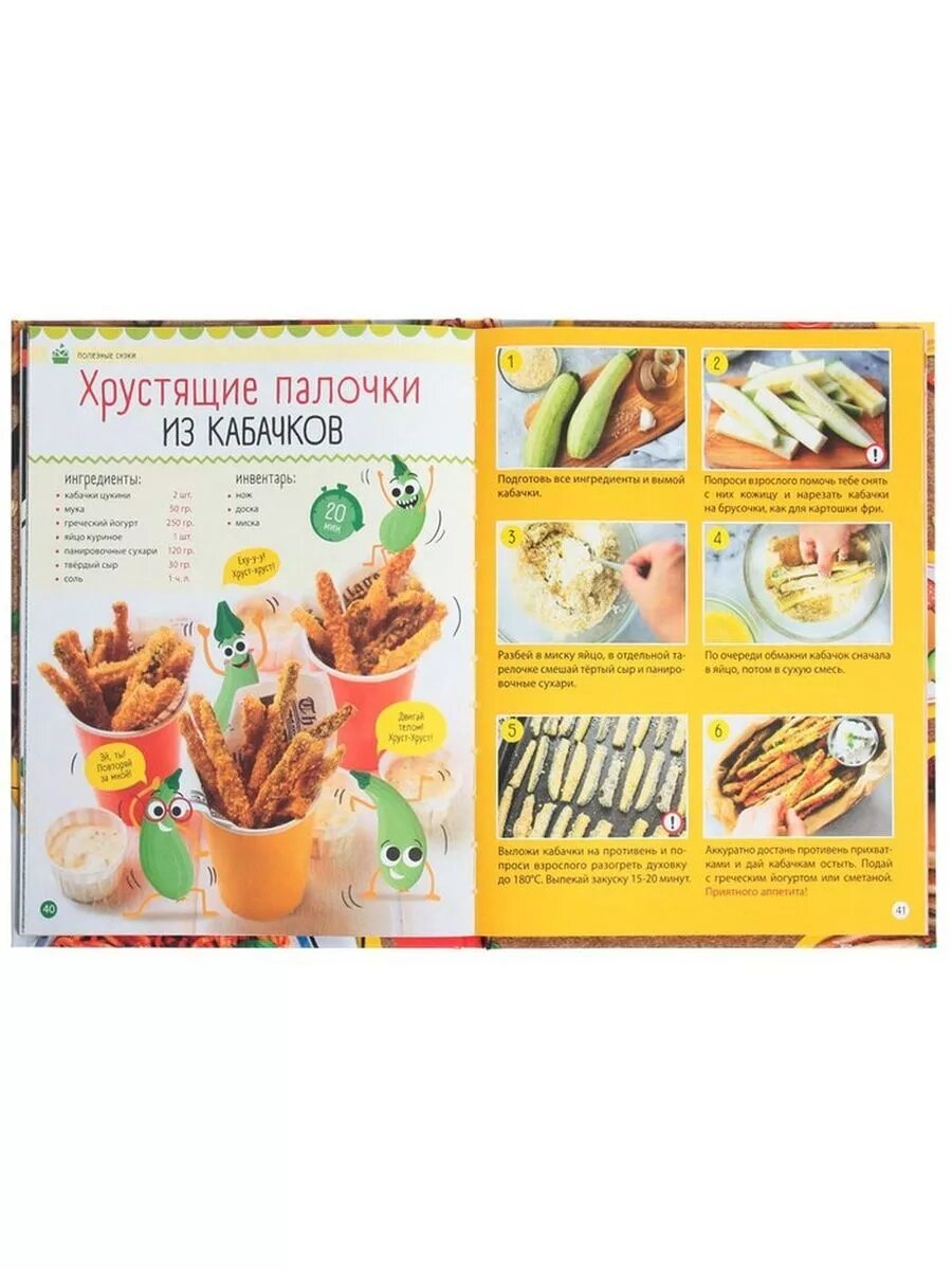 Рецепты сделаны в форме фотографий с подписями - чтобы начинающий поварёнок мог в любой момент свериться с образцом.