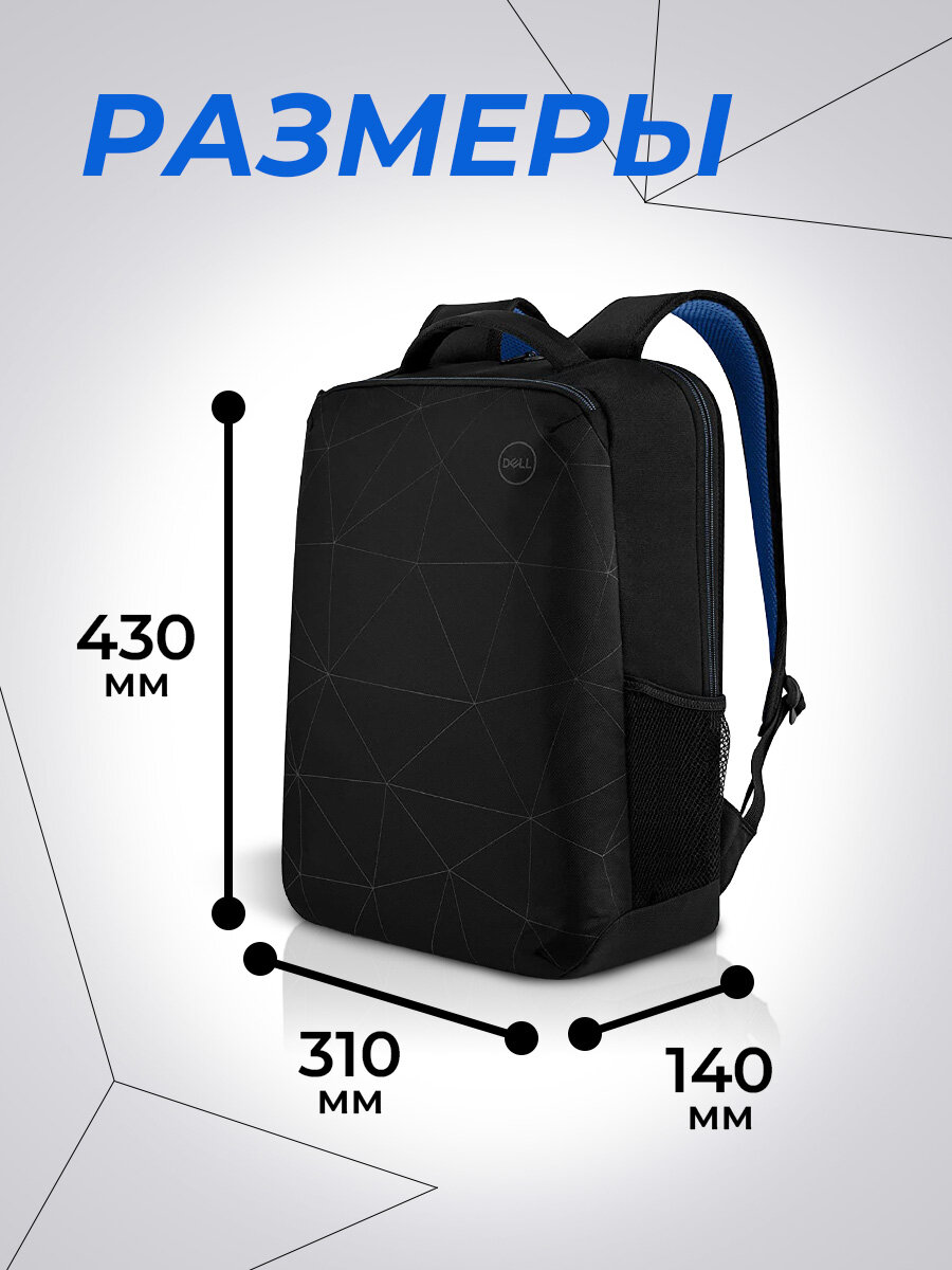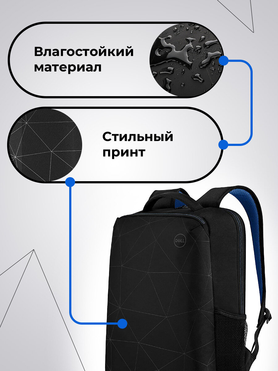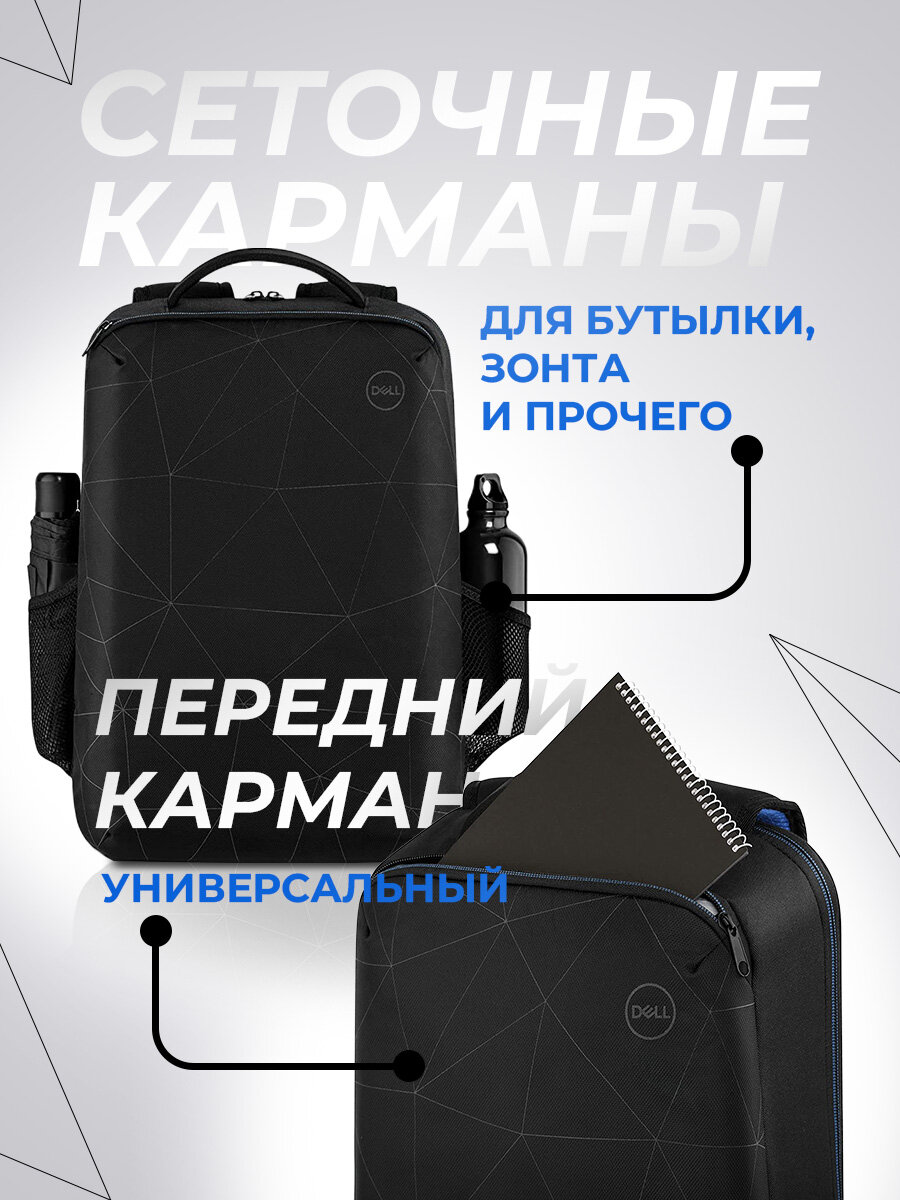 | Прочие особенности и свойства | Рюкзак для ноутбука Dell Essential 15 backpack (ES1520P) с отражающими принтами на передней панели выделяется в условиях низкой освещенности, ярко сияя при попадании прямого света, например от автомобильных фар, что делает вас более заметными для окружающих, когда вы путешествуете по оживленным улицам и тротуарам.Рюкзак изготовлен из водонепроницаемого внешнего материала со специальным мягким чехлом для ноутбука, защищает ваш ноутбук и другие предметы первой необходимости. |