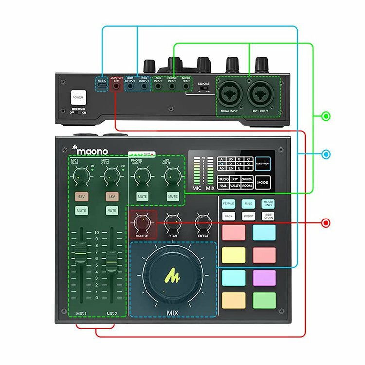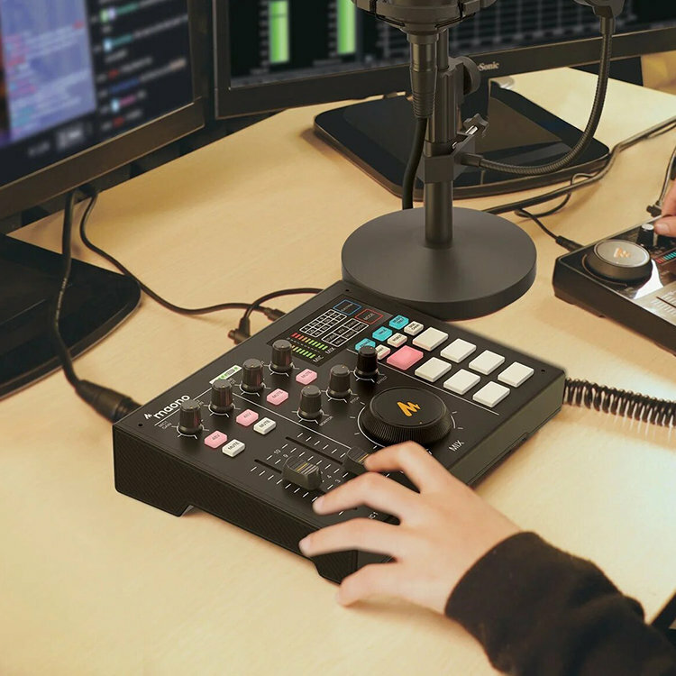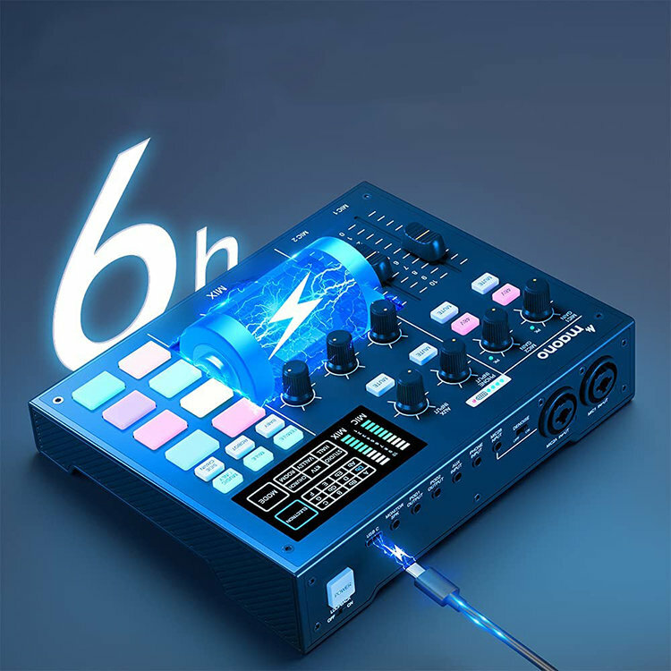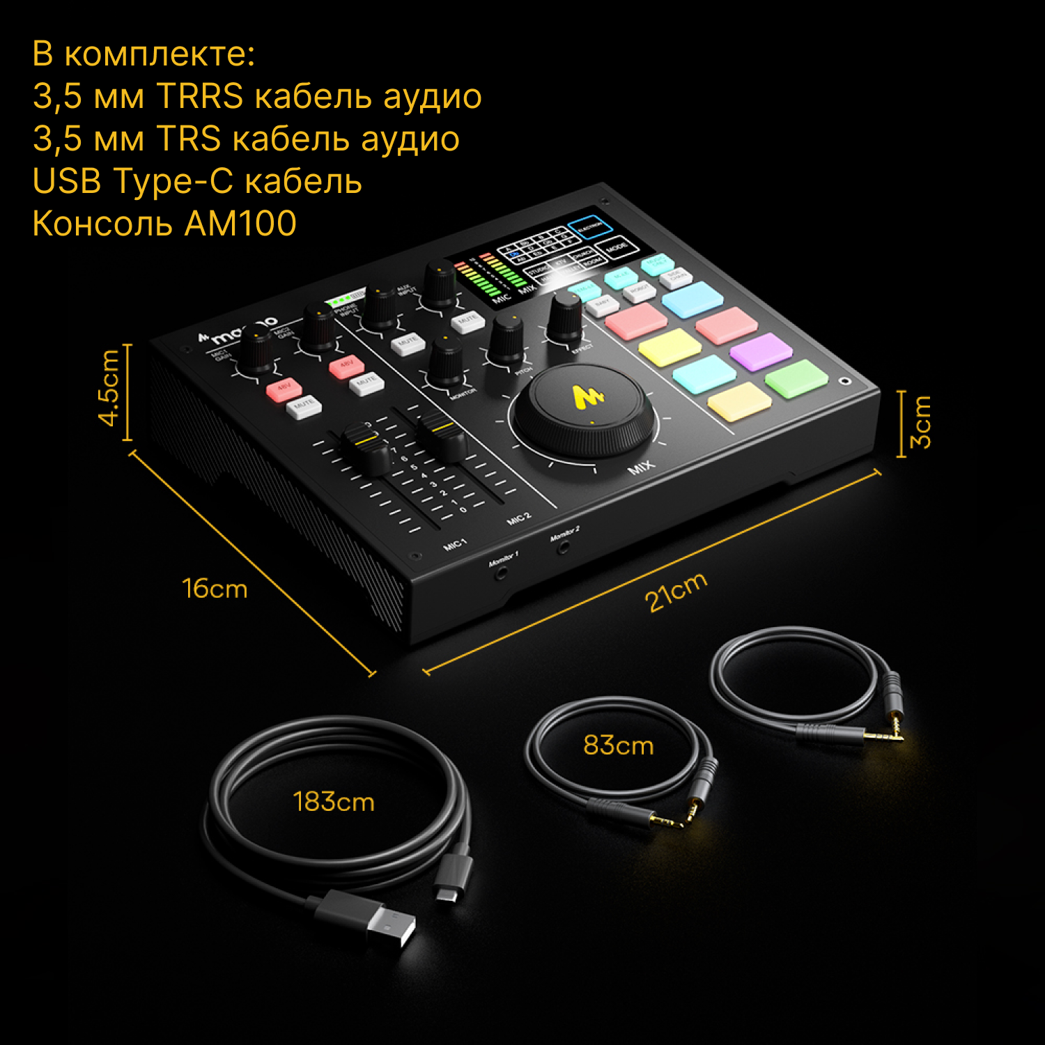 АМ100Разработан с намерением упростить способ начать подкастинг в любом месте и в любое время для тех, кто увлекается потоковой передачей и подкастингом. Аудиоинтерфейс Maonocaster AM100 получил награду CES за инновации 2021 года за свой флагманский продукт и был назван премией CES за инновации 2021 года в категории потоковой передачи ассоциацией потребительских технологий (CTA). Это будет ваше лучшее аудиооборудование для подкастинга, записи и прямых трансляций.Студия производства подкастов MAONOCaster AM100 значительно упрощает процесс производства подкастов, интегрируя несколько цифровых устройств для микширования звука в одно комплексное решение при очень доступном бюджете. Его очень легко настроить и использовать в любой комнате для записи или трансляции в прямом эфире. Он обеспечивает превосходное качество звука и предлагает интуитивно понятное и полное управление, которое соответствует потребностям как начинающих, так и опытных вещателей.Оснащен встроенным аккумулятором емкостью 5000 мАч, способным поддерживать непрерывное подкастирование не менее 6 часов, С Maonocaster AM100 вы можете продолжать прямую трансляцию во время отключения электроэнергии, когда вы находитесь на улице или даже в пути.Он поддерживает до 4 докладчиков одновременно благодаря простому подключению к 2 микрофонам для вокала и 2 источникам звука (смартфоны, MP3-плееры, музыкальные инструменты и любые устройства для воспроизведения звука с разъемом AUX 3,5 мм).Уменьшите фоновые шумы, вы получите чистый, без искажений звук с насыщенным, теплым тоном, как в профессиональных студиях.Вы можете вести прямую трансляцию на YouTube, Twitch, Spotify, Hitbox, BeamPro или записывать в свое любимое программное обеспечение для записи.