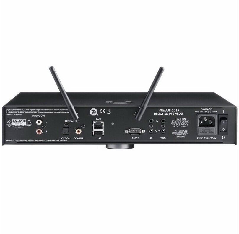 Комбинированное устройство, представляющее собой CD-проигрыватель/сетевой стример/USB-проигрыватель. ЦАП на микросхеме AK4490EQ. Транспорт Philips с щелевой загрузкой диска. Поддержка Airplay, Chromecast, Spotify и UPnP/DLNA (Ethernet, Wi-Fi). Воспроизведение аудио High resolution с параметрами 24 бит / 192 кГц (PCM) и DSD128. Аналоговый выход (регулируемый/нерегулируемый), оптический и коаксиальный выходы. Габариты (ШхВхГ): 350 x 73 x 329 мм. Вес 6,6 кг.