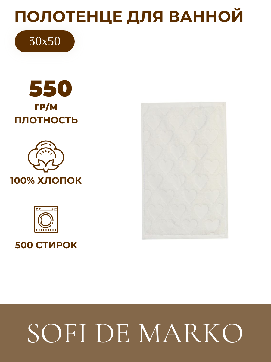 Откройте для себя удовольствие от использования истинно качественного полотенца от Sofi de Marko. Наше полотенце банное размером 50х90 см, создано для тех, кто ценит сочетание изысканности и функциональности в одном изделии. Произведено из 100% хлопка Турция, это полотенце махровое обладает высокой впитываемостью и мягкостью, делая его незаменимым аксессуаром в вашем ванном арсенале.Идеально подходящее для ежедневного использования, это полотенце быстро впитывает влагу, благодаря чему вы сможете наслаждаться мгновенным комфортом после душа или ванны. Повышенная плотность ткани 550 г/м2 делает полотенце долговечным в использовании.Разработанное с учетом требований самых требовательных покупателей, наше полотенце махровое сочетает в себе практичность и эстетическую привлекательность. Хлопок Турция, из которого оно изготовлено, гарантирует, что полотенце сохранит свои уникальные свойства даже после многочисленных стирок, не теряя при этом цвета и мягкости.Выбирая наше полотенце банное, вы выбираете не просто предмет домашнего текстиля, а предмет роскоши и комфорта, который станет незаменимым в вашей ванной комнате. Подарите себе и своим близким это маленькое сокровище от Sofi de Marko и наслаждайтесь каждым моментом его использования.Полотенце махровое.Состав: 100% хлопок; Плотность: 550гр/м;Размер: 50х90 (1) Переплетение 24\2Уход: стирка 40с° Упаковка: ПВХ