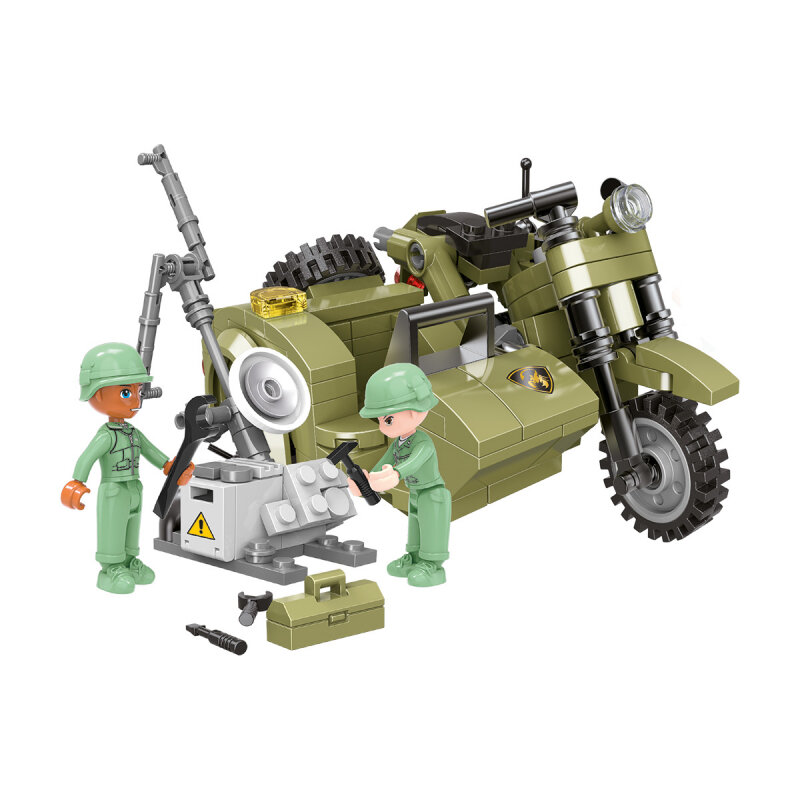 Ребенок сможет собрать модели мотоцикла и станции спутниковой связи, а фигурки, входящие в набор, сделают игру еще интереснее.