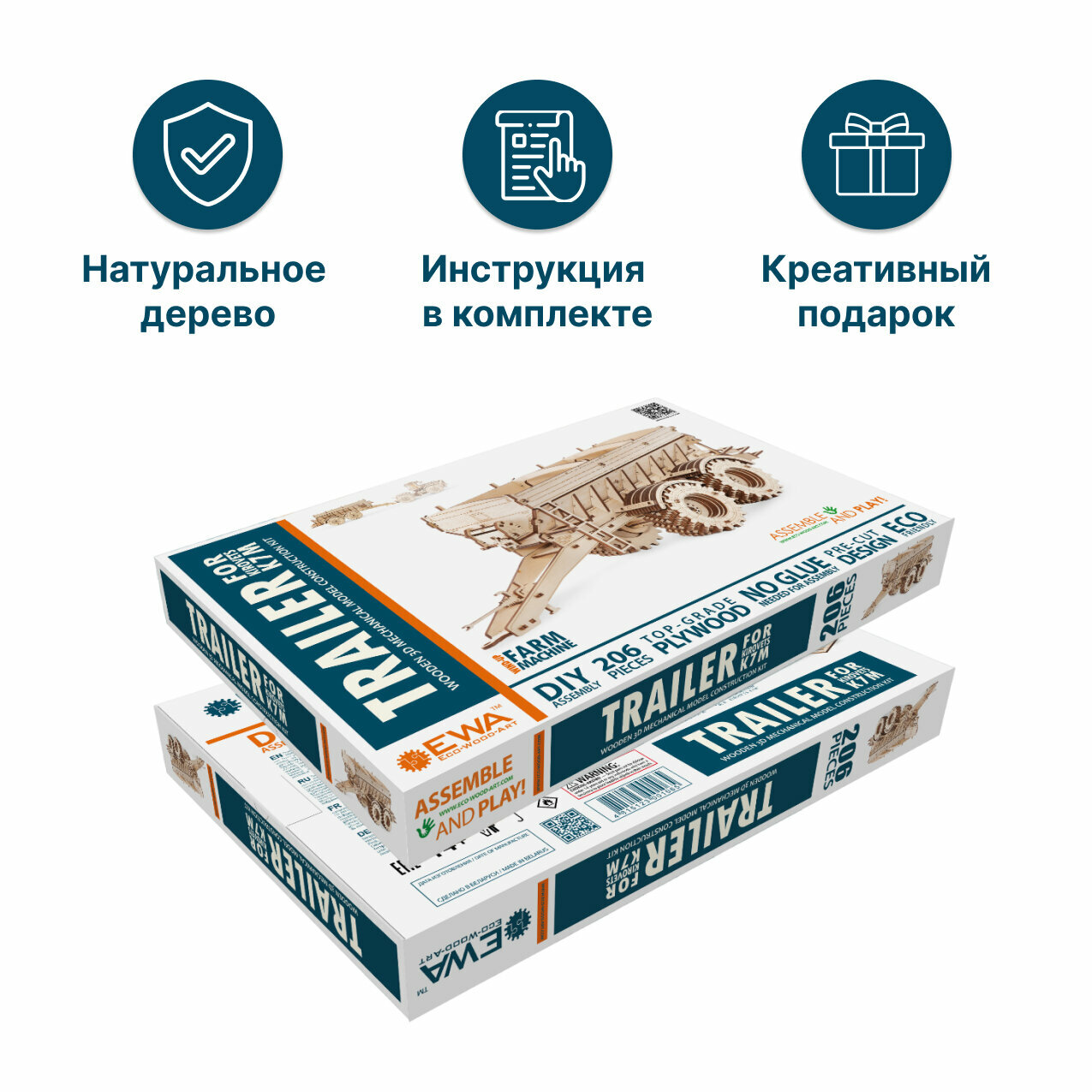 Конструктор Eco Wood Art деревянный 3D Ew Прицеп к трактору Кировец К-7М