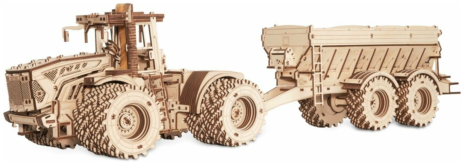 Деревянный конструктор и сборная модель Прицеп для Трактора Кировец К - 7М EWA Eco -Wood - Art. У модели крутятся колеса, его можно присоединить к Трактору, открывается грузовая часть. Прицеп для Трактора Кировец К-7М - это копия настоящего прицепа трактора. Идеально исполнена для вас.