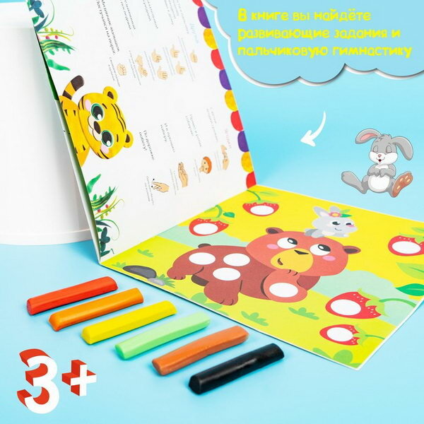 В комплекте есть разноцветный мягкий пластилин, поэтому можно сразу приступать к творческим занятиям с малышами.
