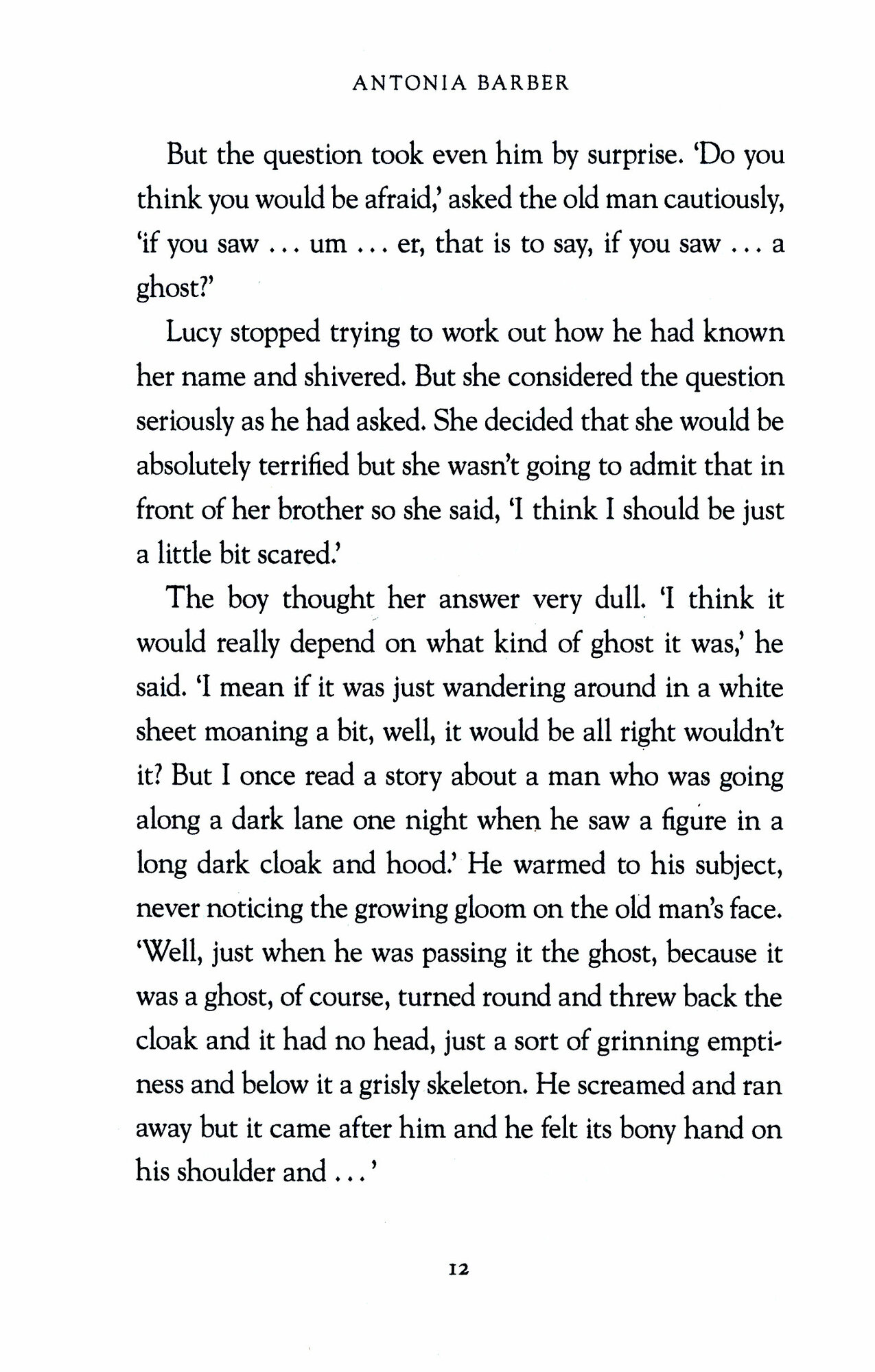 Mr Blunden's words echoed through Lucy's ears as she explored the house. It was such an old house that it seemed to Lucy as if all the past was gathered up inside it as if in a great box; as though it had a life of its own that continued to exist just beyond the reach of her eyes and ears. Did Mr Blunden, who went out of his way to offer their mother the job as caretaker, mean to help or hurt them? Could she and her brother Jamie really help those troubled ghosts from another age?