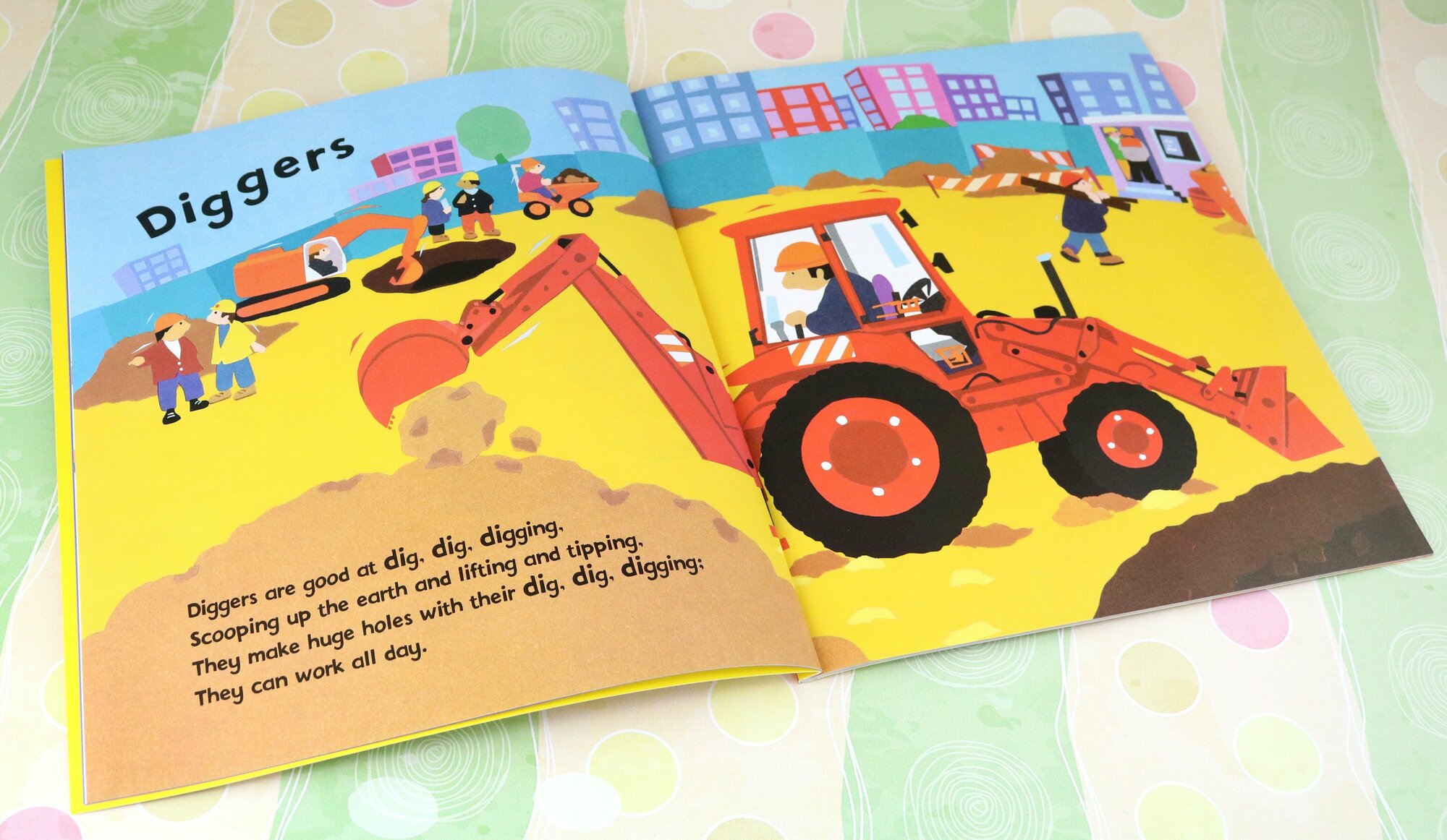 Diggers are good at did, dig, digging. They can work all day. The perfect book for little lovers of digging. Ages 2-5.