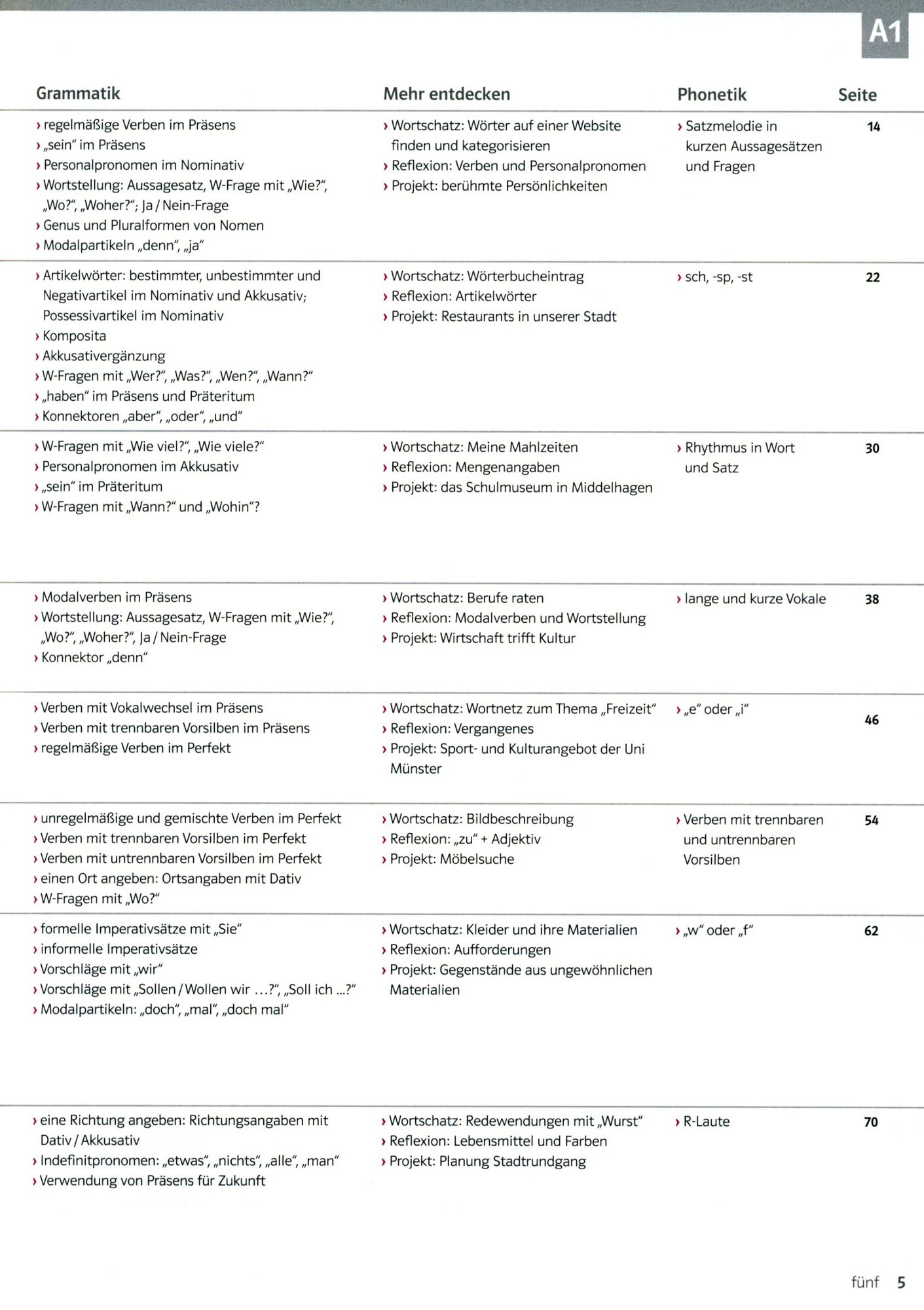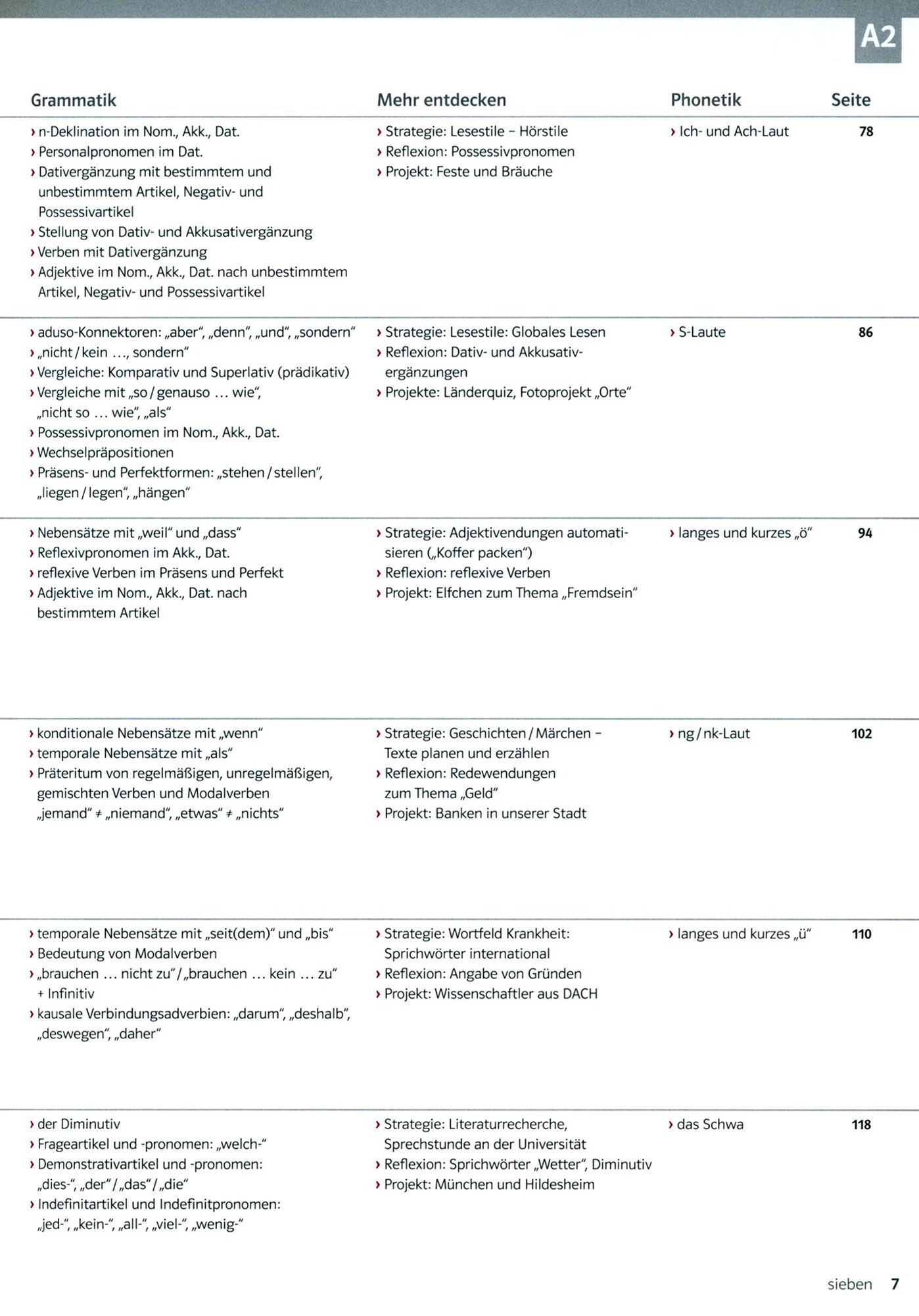 Es folgt dem Doppelseitenprinzip des Kursbuchs und unterstutzt den gezielten Aufbau aller Fertigkeiten von Anfang an. Als Abschluss und Erganzung jeder Lektion bietet es unter der Rubrik „mehr entdecken“ Lern- und Arbeitsstrategien zu Lese- und Horverstehen, Textproduktion, Wortschatzerweiterung sowie Anregungen fur Projekte.