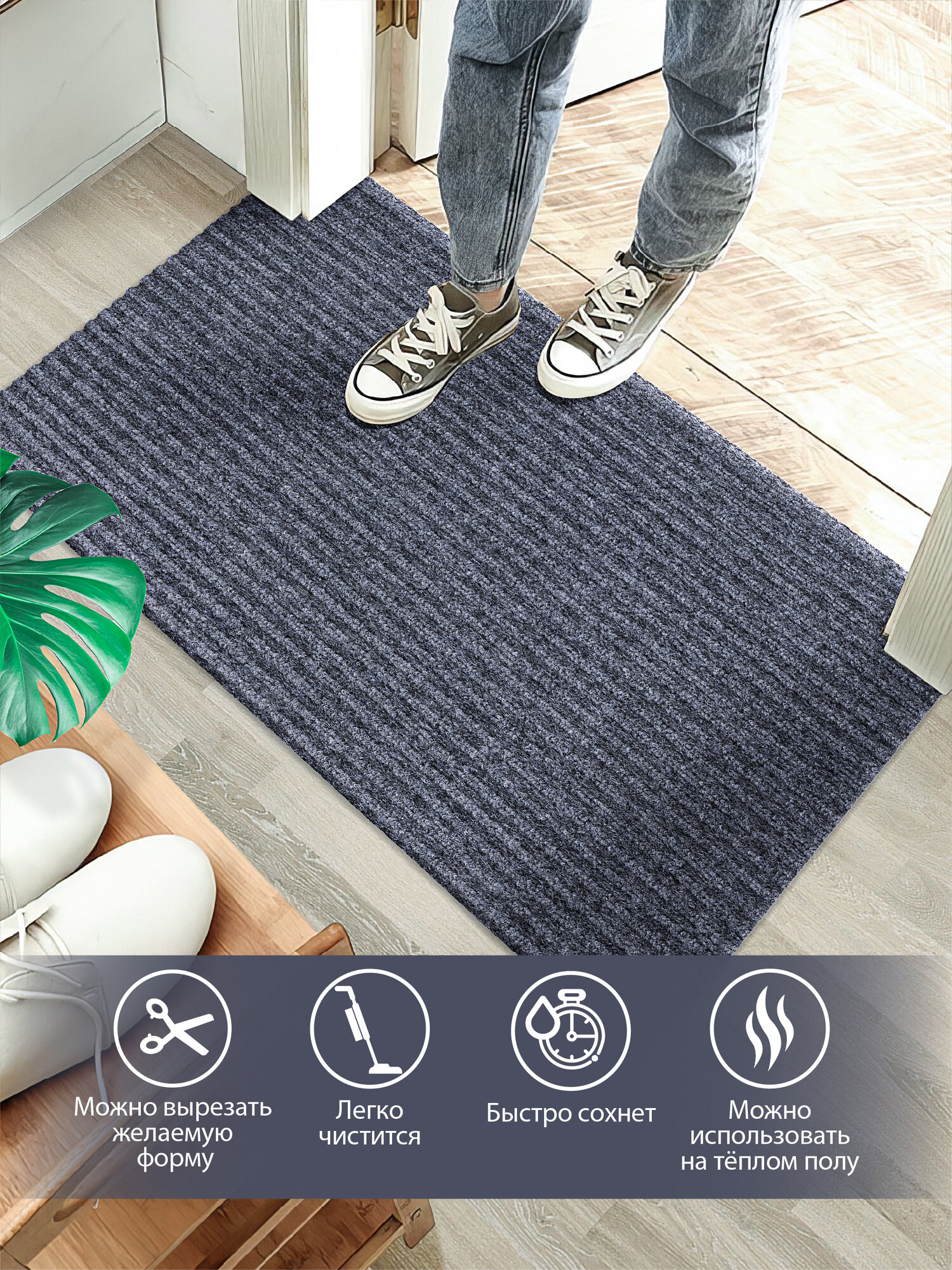 Придверный коврик - незаменимый аксессуар внутри помещения, который защитит жилое пространство от грязи и пыли, а также песка и снега. Он легко моется, не скользит и не пропускает воду. Вырезной коврик имеет ворс из полиэстера, который хорошо впитывает влагу. Основа - термопластичная резина. Коврик можно вырезать под свой дверной проем обычными ножницами. Одним из главных преимуществ этого коврика является его простота в уходе. Вы можете стирать его в стиральной машине, режим быстрой стирки, максимальные обороты - он как новенький! Ковер придверный- это не только защита от грязи и влаги, но и удобство в использовании. Благодаря своей высокой износостойкости он подойдет не только для домашнего использования, но и для бизнес-объектов и социальных учреждений. Закажите коврик Icarpet "Ребристый", и вы получите незаменимый аксессуар для вашего дома или офиса, который будет служить вам долгое время!