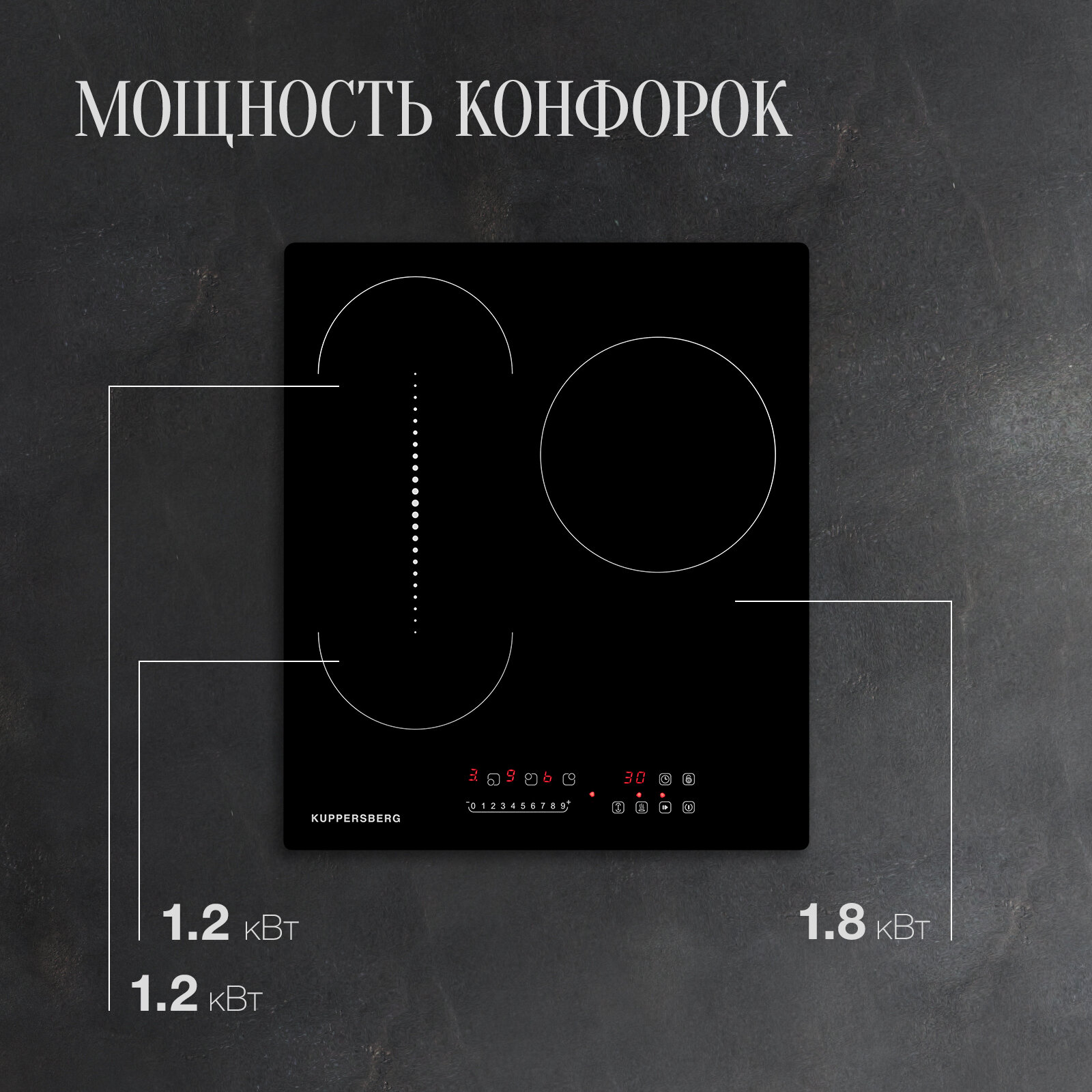 | Мощность конфорок, кВт | задняя левая:1,2 кВт |