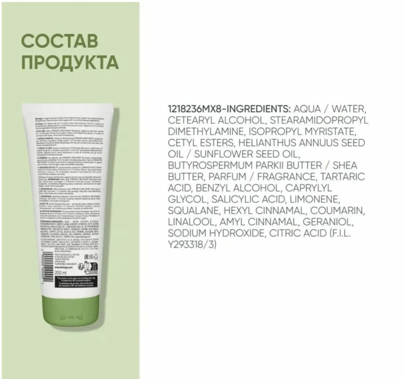 Питающий кондиционер Strenght Recovery для поврежденных волос, увлажняет волосы и моментально снижает их ломкость.