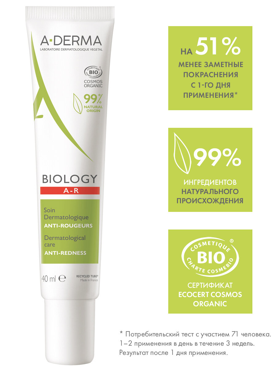 "Дерматологический флюид для кожи, склонной к покраснениям с органическим экстрактом ростков овса Rhealba® BIO Свойства: органическое дермокосметическое средство, сертифицированное ECOCERT GREENLIFE по международным стандартам COSMOS ORGANIC. Устраняет чувство дискомфорта и уменьшает покраснение кожи. Освежающая текстура флюида. Без отдушек. Без эфирных масел. Протестирован под контролем дерматологов и офтальмологов. Некомедогенно. Подходит для контура глаз и кожи, склонной к аллергии. 99% натуральных ингредиентов. 22% всех ингредиентов выращено по стандартам органического земледелия. Не содержит компонентов животного происхождения. Ростки овса Rhealba® BIO восстанавливают баланс и увлажняют кожу благодаря поддержанию баланса основных минералов кожи (кальций и магний) и естественному производству гиалуроновой кислоты. (2) Экстракт мандарина: успокаивает и уменьшает повторное появление покраснения. Мгновенно и надолго снимает ощущение дискомфорта и жжения. Увлажняет на 24 часа. (3) (1) Поверхностный дерматологический тест. (2) Подано 2 патента (экстракция и активность активного ингредиента). (3) Кинетический тест: 20 субъектов, однократное применение. "