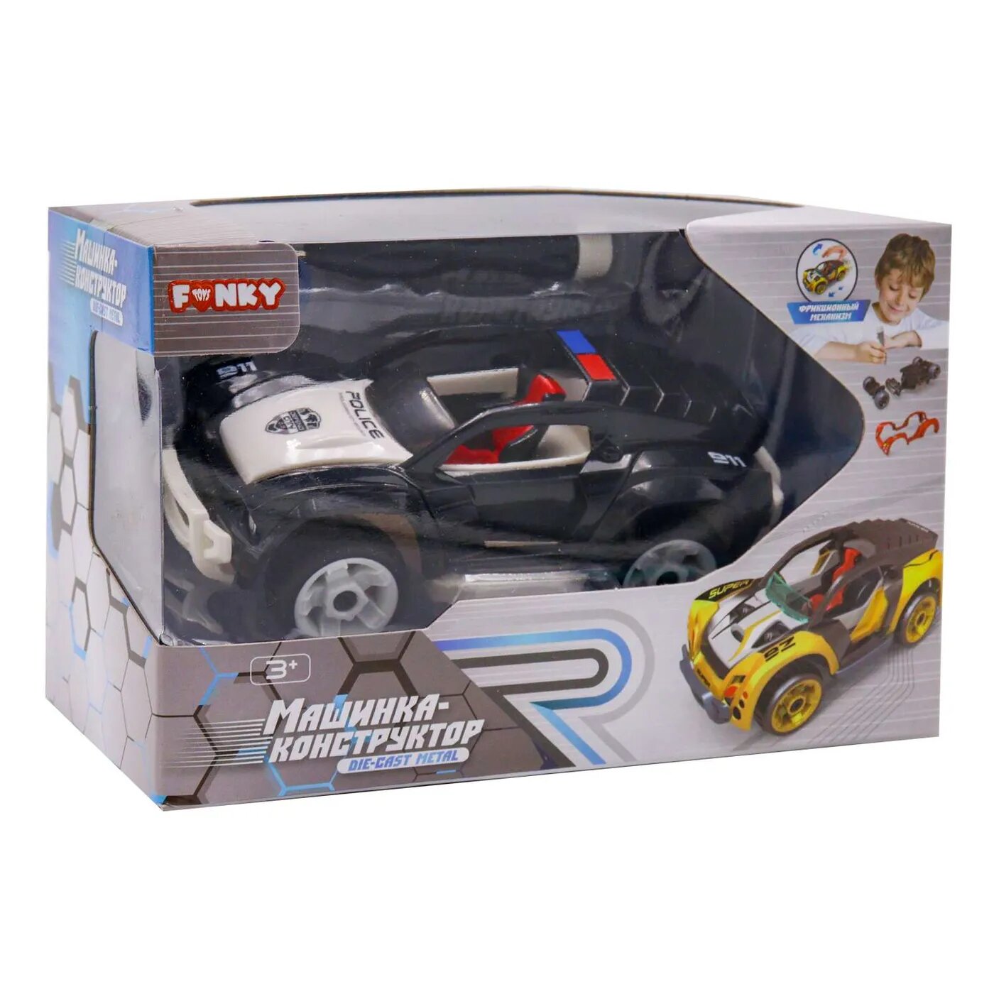 Детская фрикционная металлическая машинка конструктор от Funky Toys отлично развивает моторику рук ребенка. Благодаря встроенному механизму, машинка может легко передвигаться самостоятельно, для этого достаточно потянуть ее назад.