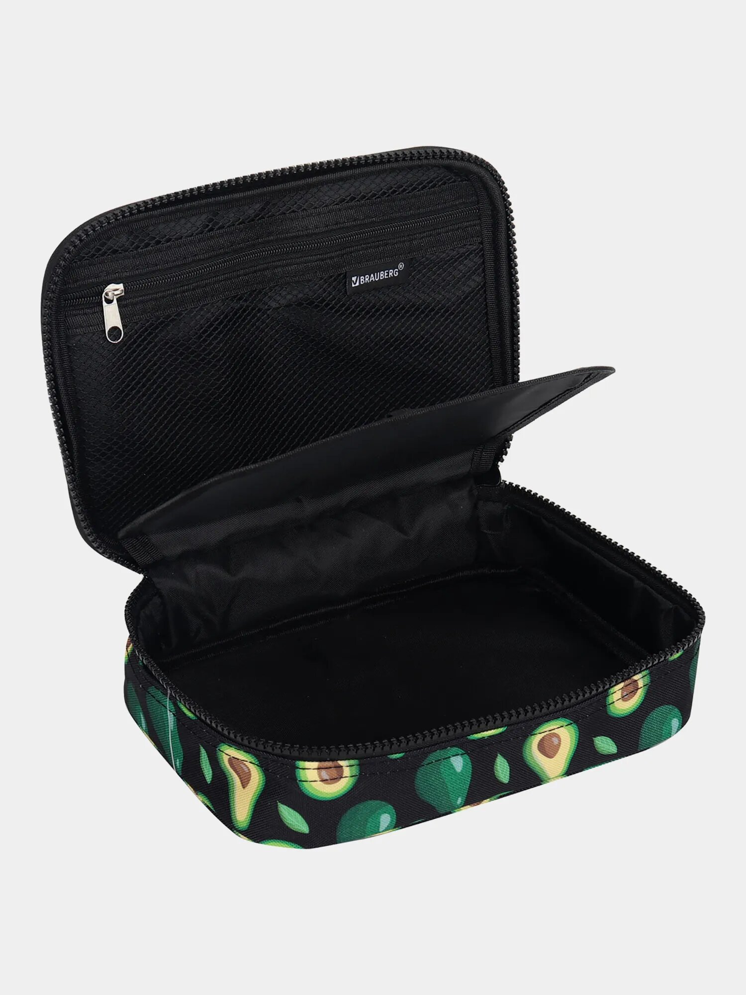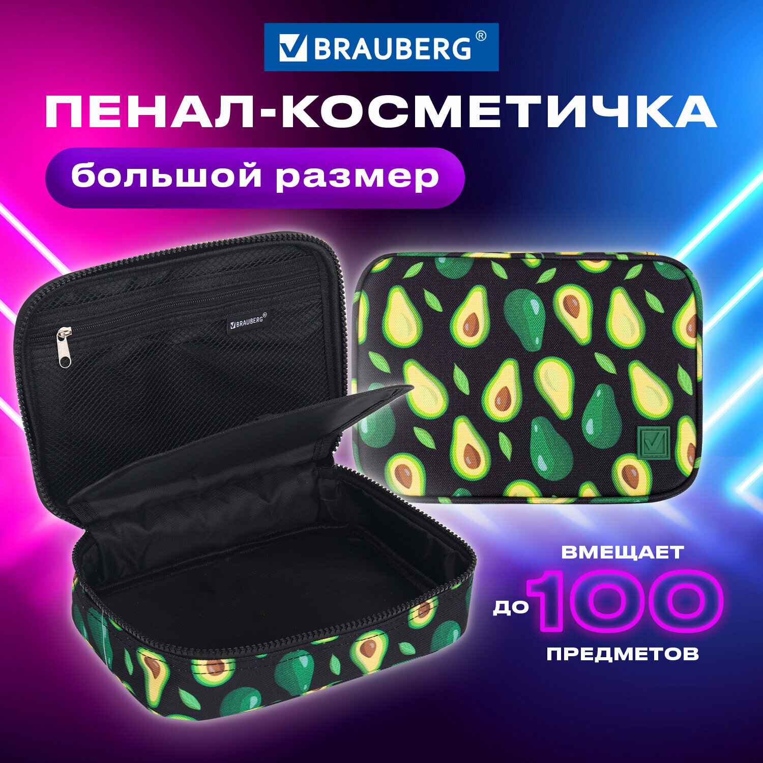Пенал-косметичка Brauberg увеличенного объема выполнен из прочного материала. Надежная молния оснащена металлическим брендированным бегунком. Пенал вмещает до 100 канцелярских предметов стандартных размеров.