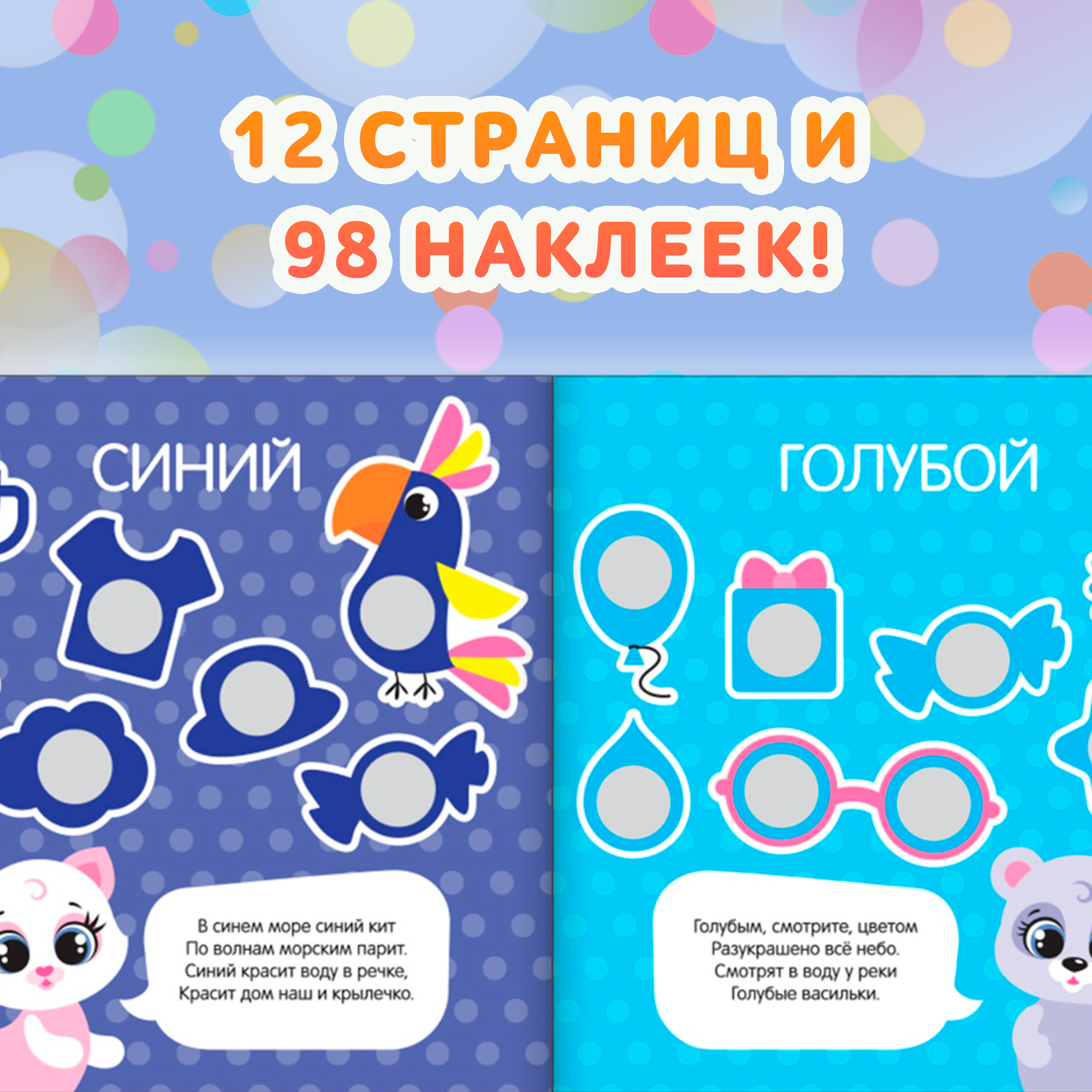 Внутри книги малыша ждут интересные задания, в которых нужно подобрать наклейки по форме, цвету и смыслу и прикрепить в определённое место.