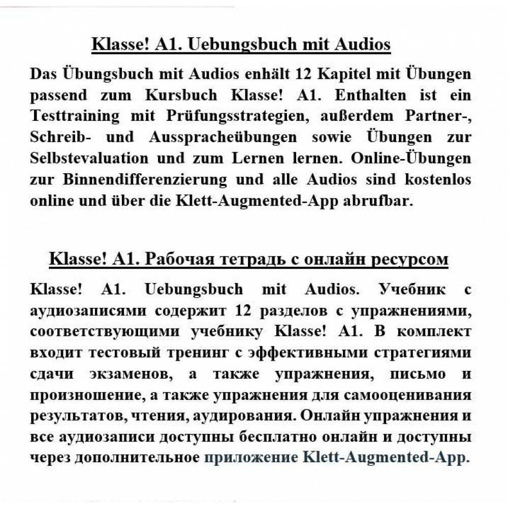 Klasse! A1. Deutsch für Jugendliche. Übungsbuch mit Audios (Fleer S. Schwieger B. Koithan U. Mayr-Sieber T.); Klett, 2018