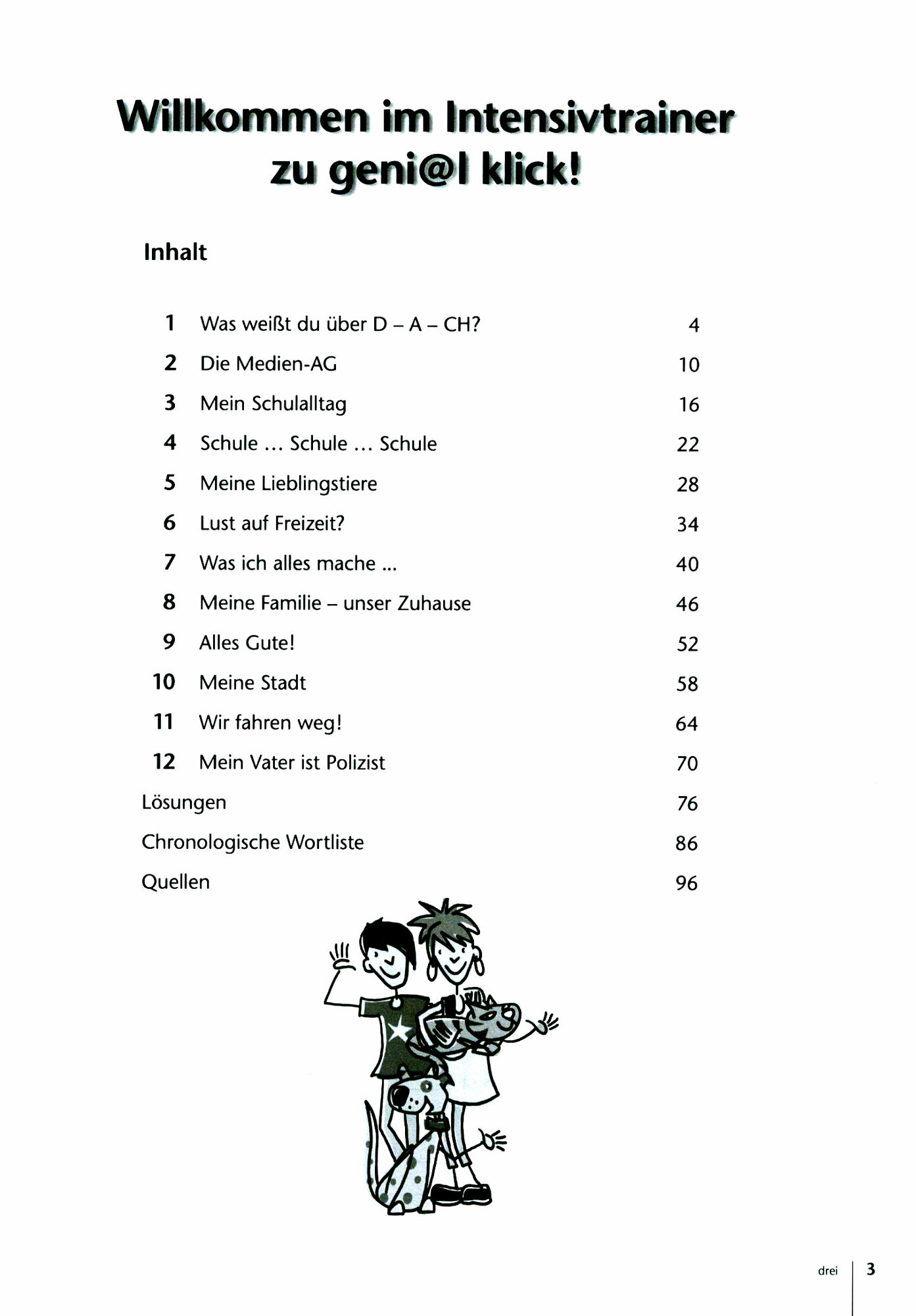 Трехуровневый курс Geni@l klick адресован подросткам, ранее не изучавшим немецкий язык: он поднимает их уровень владения немецким языком от уровня A1 до уровня B1, а также готовит к экзаменам "Fit in Deutsch 1", "Fit in Deutsch 2", "Zertifikat B1" и "Zertifikat Deutsch".