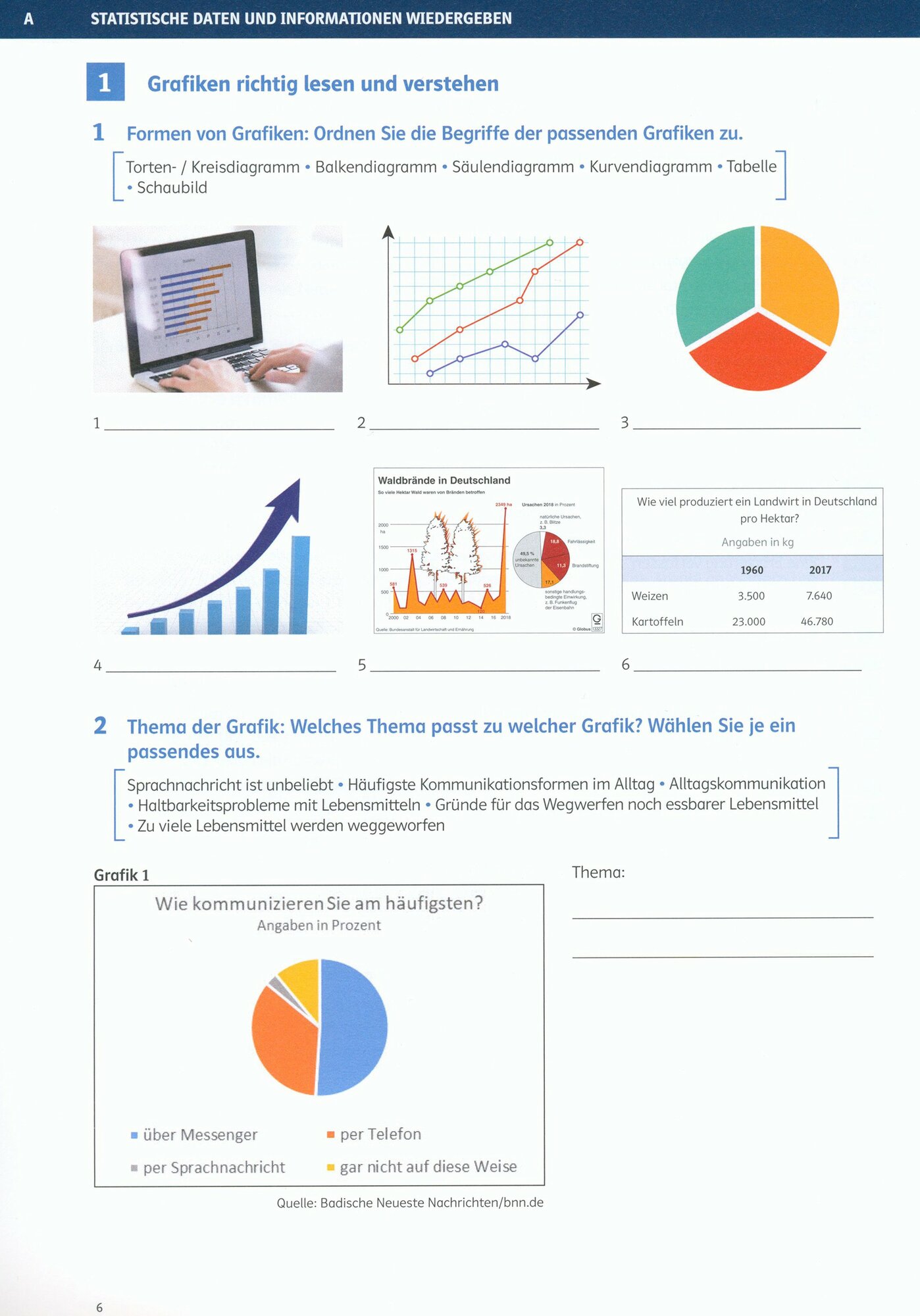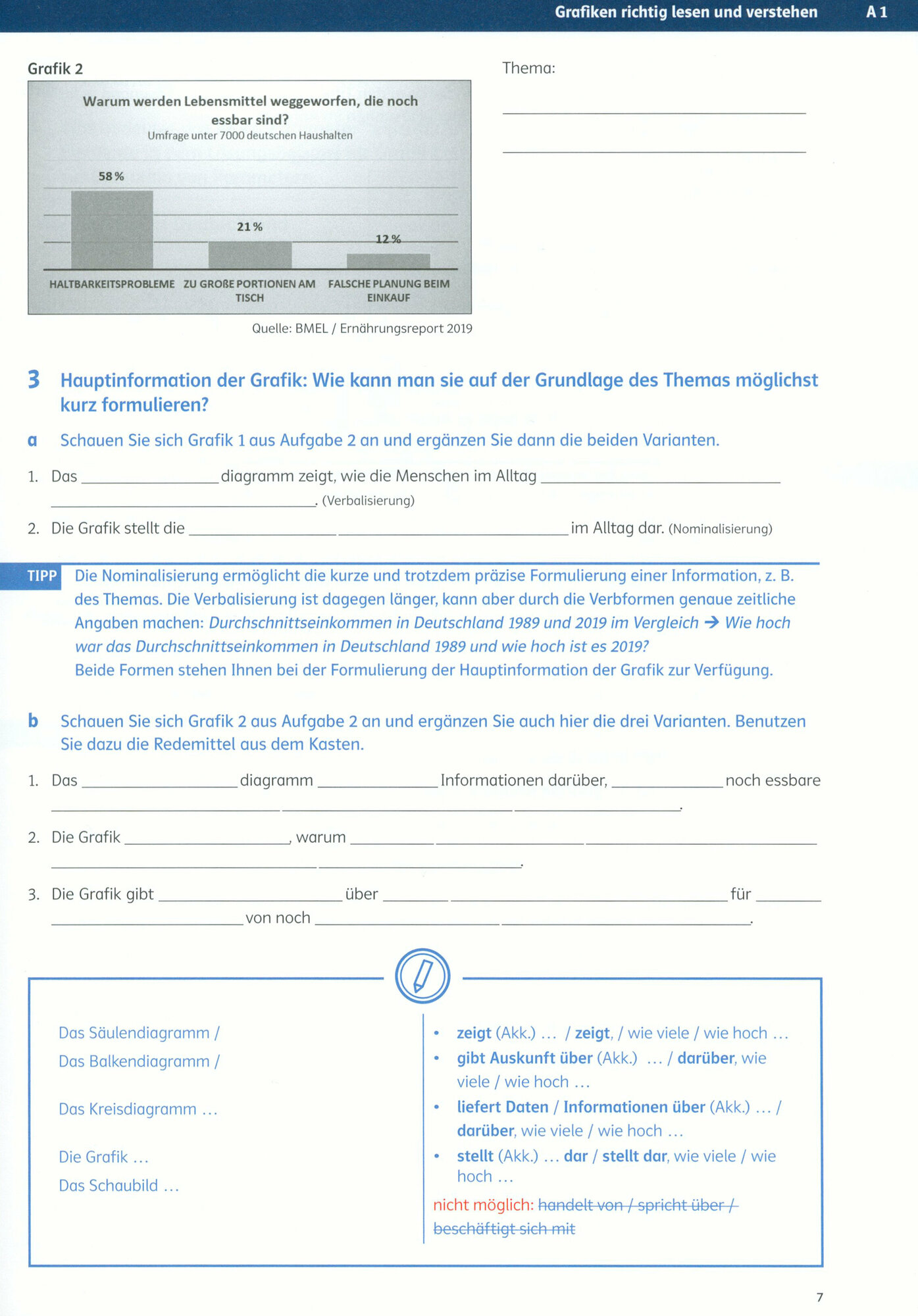 eine Grafik beschreiben, mit Prozentzahlen richtig umgehen, Entwicklungen und Trends darstellen, Informationen vergleichen, interpretieren, ein Fazit ziehen etc.