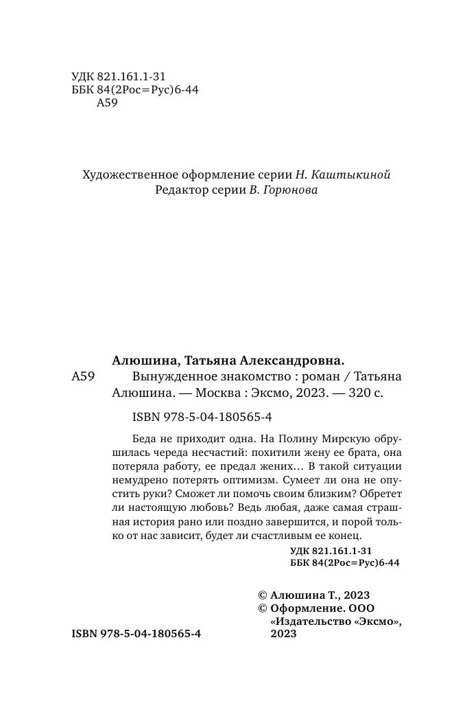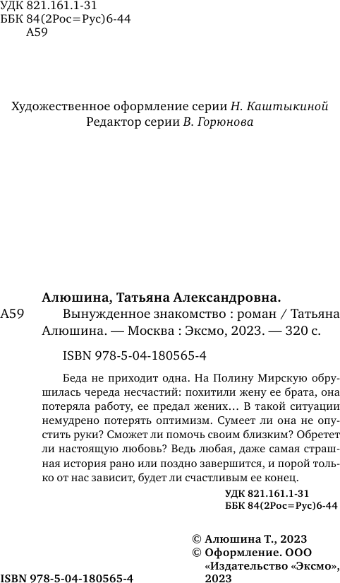 Книга: Вынужденное знакомство (Алюшина Татьяна Александровна); ООО "Издательство "Эксмо", 2023