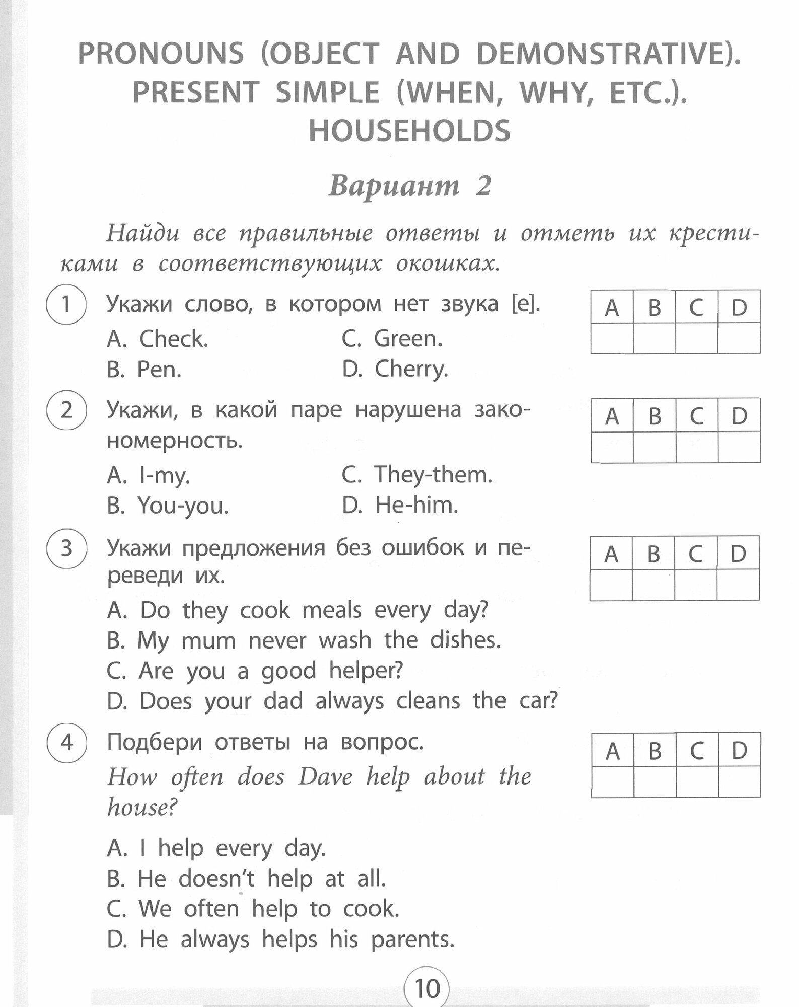 Каждая проверочная работа состоит из двух вариантов по семь заданий. Задания каждого варианта разнообразны по типологии (выбор одного или нескольких правильных ответов, анализ, систематизация и конструирование текстов и диалогов, заполнение таблиц путем анализа материала упражнения), направлены на формирование у обучающихся универсальных учебных навыков, основ логического мышления, а также на проведение качественного оценивания результатов обучения.