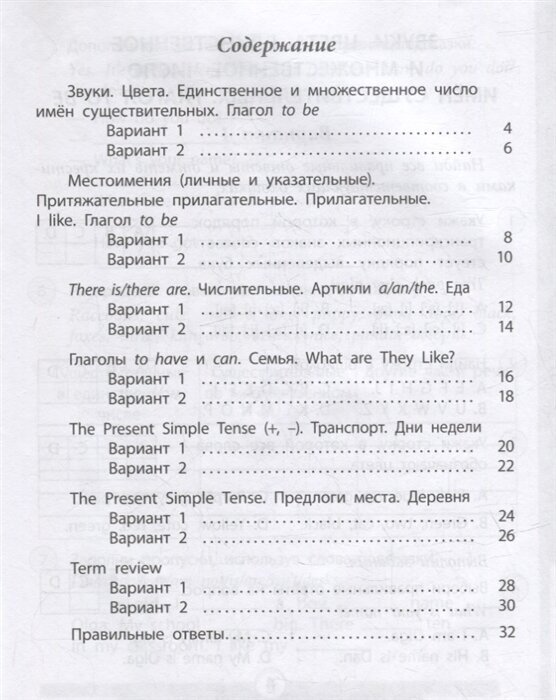 Каждая проверочная работа состоит из двух вариантов по семь заданий. Задания каждого варианта разнообразны по типологии (выбор одного или нескольких правильных ответов, анализ, систематизация и конструирование текстов и диалогов, заполнение таблиц путем анализа материала упражнения), направлены на формирование у обучающихся универсальных учебных навыков, основ логического мышления, а также на проведение качественного оценивания результатов обучения.