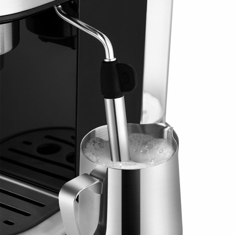 Прибор оснащен автоматическим капучинатором, который взбивает молоко в густую пену. Есть регулировка подачи пара, что позволяет контролировать температуру напитка. Другие технические параметры: