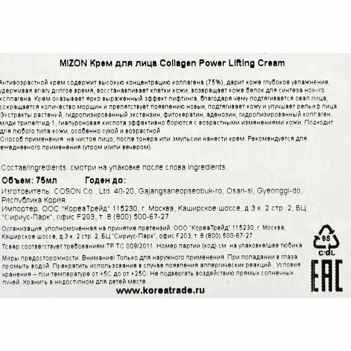 | Коллекция | Mizon Collagen Power Lifting Cream |