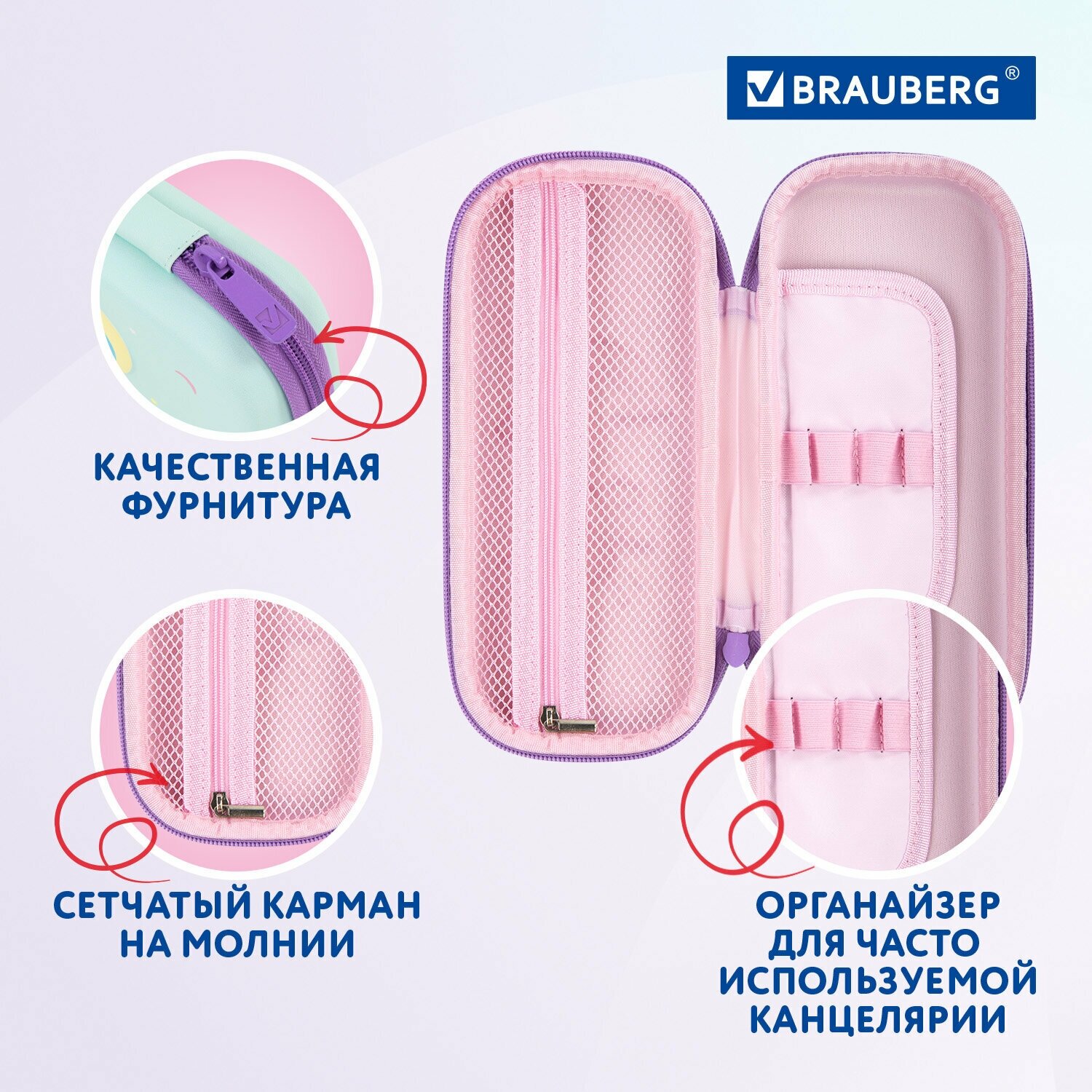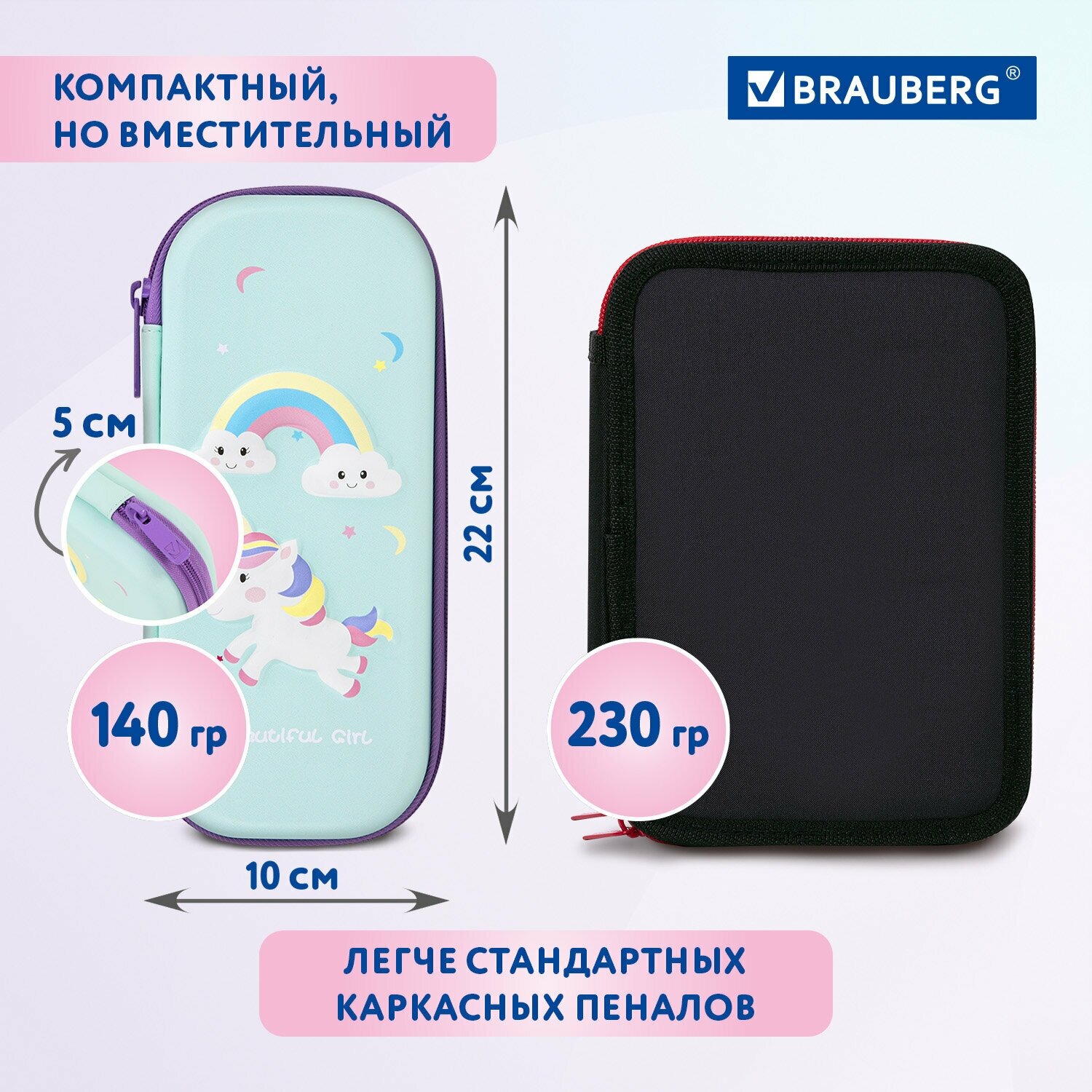 Пенал каркасный Brauberg выполнен из EVA материала с эффектом объемного изображения. Вмещает до 50 канцелярских предметов стандартного размера.