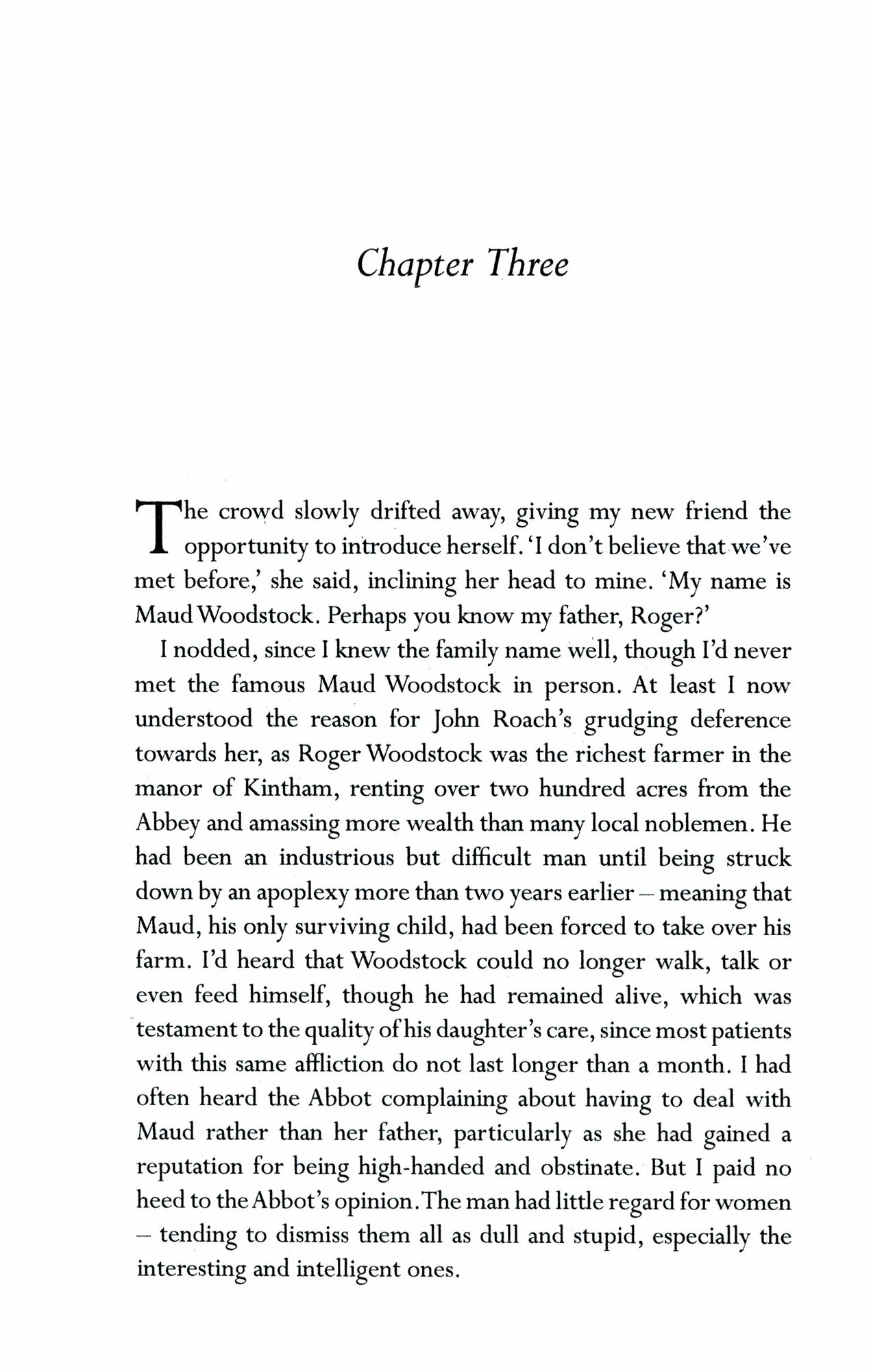 1370. Oswald de Lacy was not always Lord of the Manor, or even meant to be. The third son, he was sent off to become a novice monk. Now, with winter closing in on Somershill, his wife flirting with their houseguest, his sister sniping from the sidelines and his mother still ruling his life even from her deathbed, Oswald is forced to confront the secret that has haunted him ever since those days in the monastery.