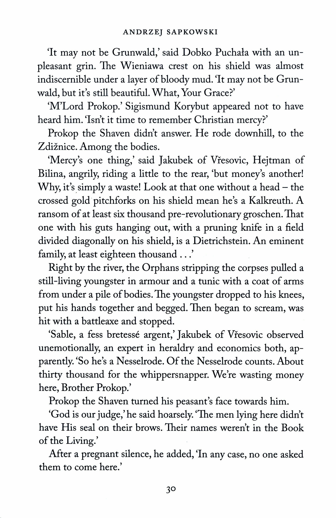 Sapkowski's deftly written novel delivers gripping action full of numerous twists and mysteries, seasoned with elements of magic and Sapkowski's ever-present - and occasionally bawdy - sense of humour. Fans of the Witcher will appreciate the rich panorama of this slice of the Middle Ages.