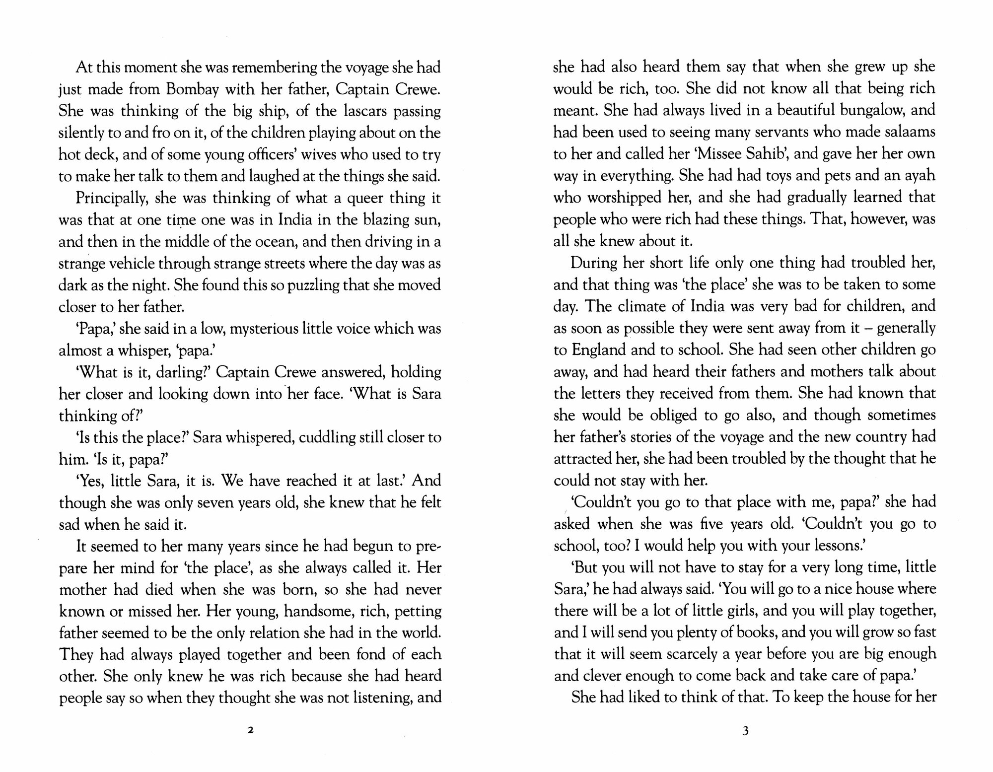 When Sara Crewe is sent to Miss Minchin's school for young ladies, her indulgent father provides for her as if she were a little princess. But although her toys and clothes are the envy of the other girls, Sara's kindness and gift for storytelling soon win her lots of friends. Then, the tragic news arrives that her father has died penniless and, without wealth or a guardian, Sara is at the mercy of Miss Minchin. Forced to work from dawn until dusk as the school's unpaid servant, she looks over the rooftops from her damp attic room and dreams of a better life. All is not lost: she has friends, courage and imagination - maybe that's all she really needs.