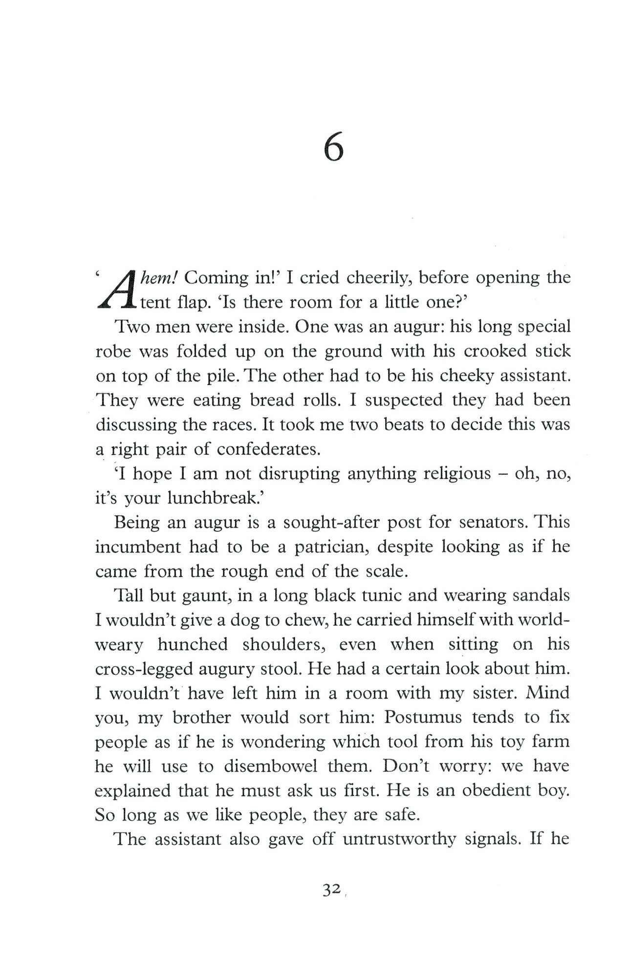 But Flavia Albia suspects there's more to the incident than meets the eye, as there are plenty of people who would have been delighted to be rid of the overseer. He was an abusive swine who couldn't organise a booze-up in a winery and was caught up in a number of scams, including one surrounding the supply of imperial purple dye and a family of shellfish-boilers.