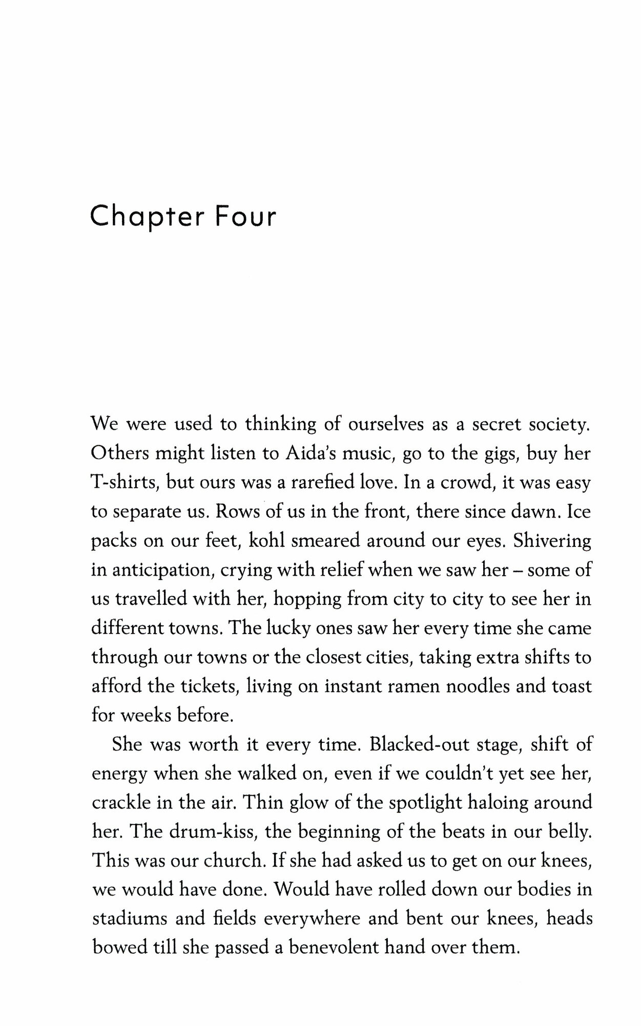 Aida is the defining rock star of her age; her every move observed, examined and owned by a devoted, cultish fanbase. When she disappears without a trace into a complicated love affair they are determined to find her, uncover her truths and own her once more.