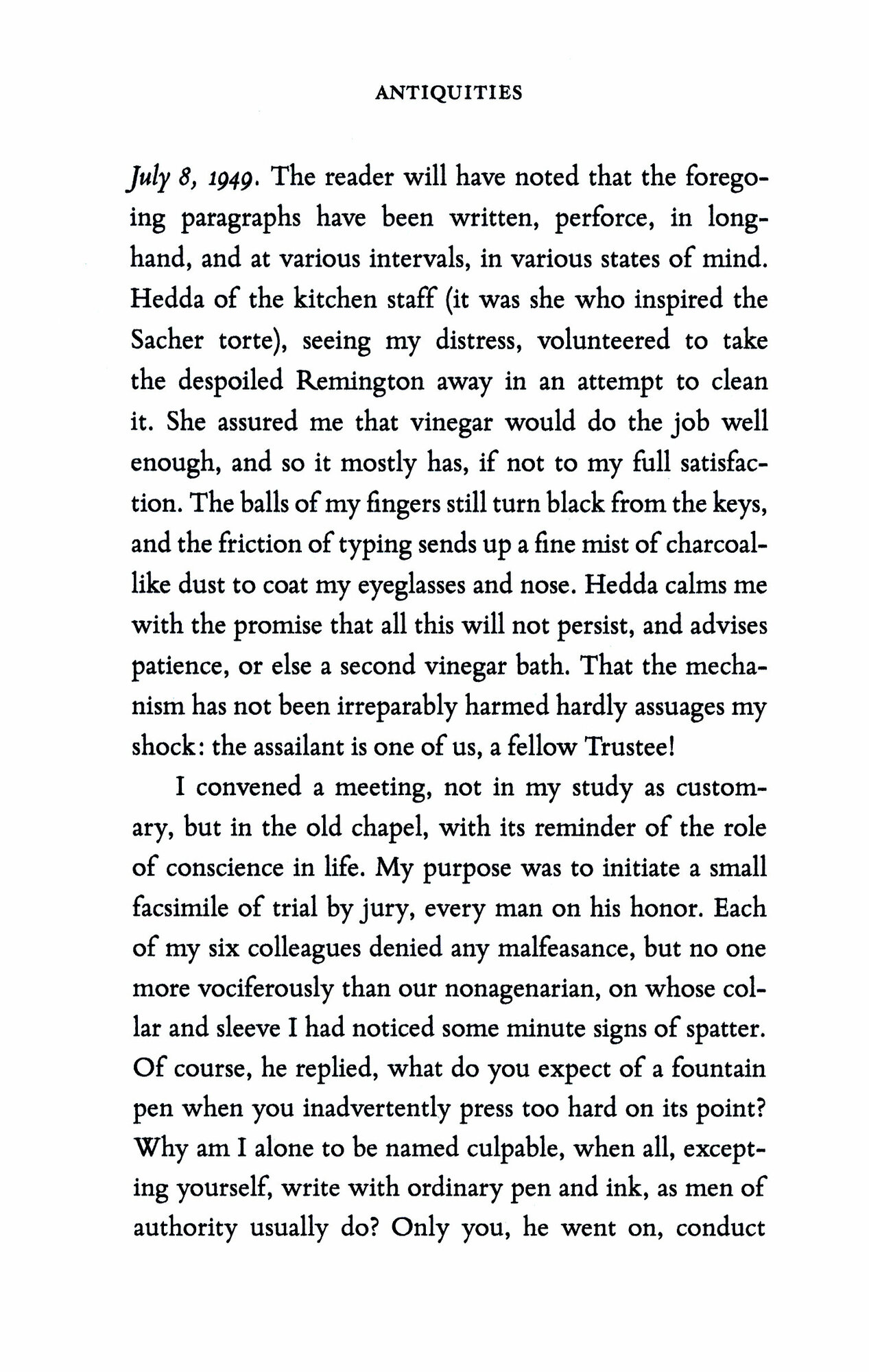 In 1949, Lloyd Wilkinson Petrie returns as a Trustee to the long-defunct boarding school that he attended as a child. There he is preparing a memoir about the subtle anti-Semitism that pervaded the school, about his fascination with the Egyptian archaeological adventures of his distant cousin, about the passions of a boyhood friendship with named Ben-Zion Elefantin, a mystifying older pupil.