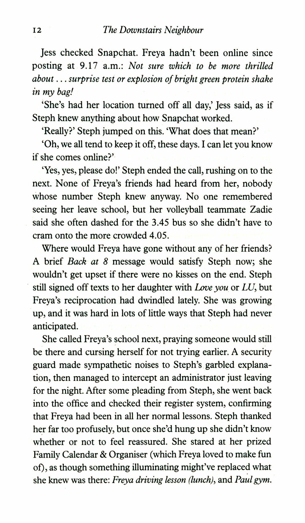 But their lives are all upended when Freya vanishes. As the police become involved and a frantic Paul and Steph desperately search for answers, they begin to realise that the truth behind their daughter's disappearance may lie closer to home than they were expecting.