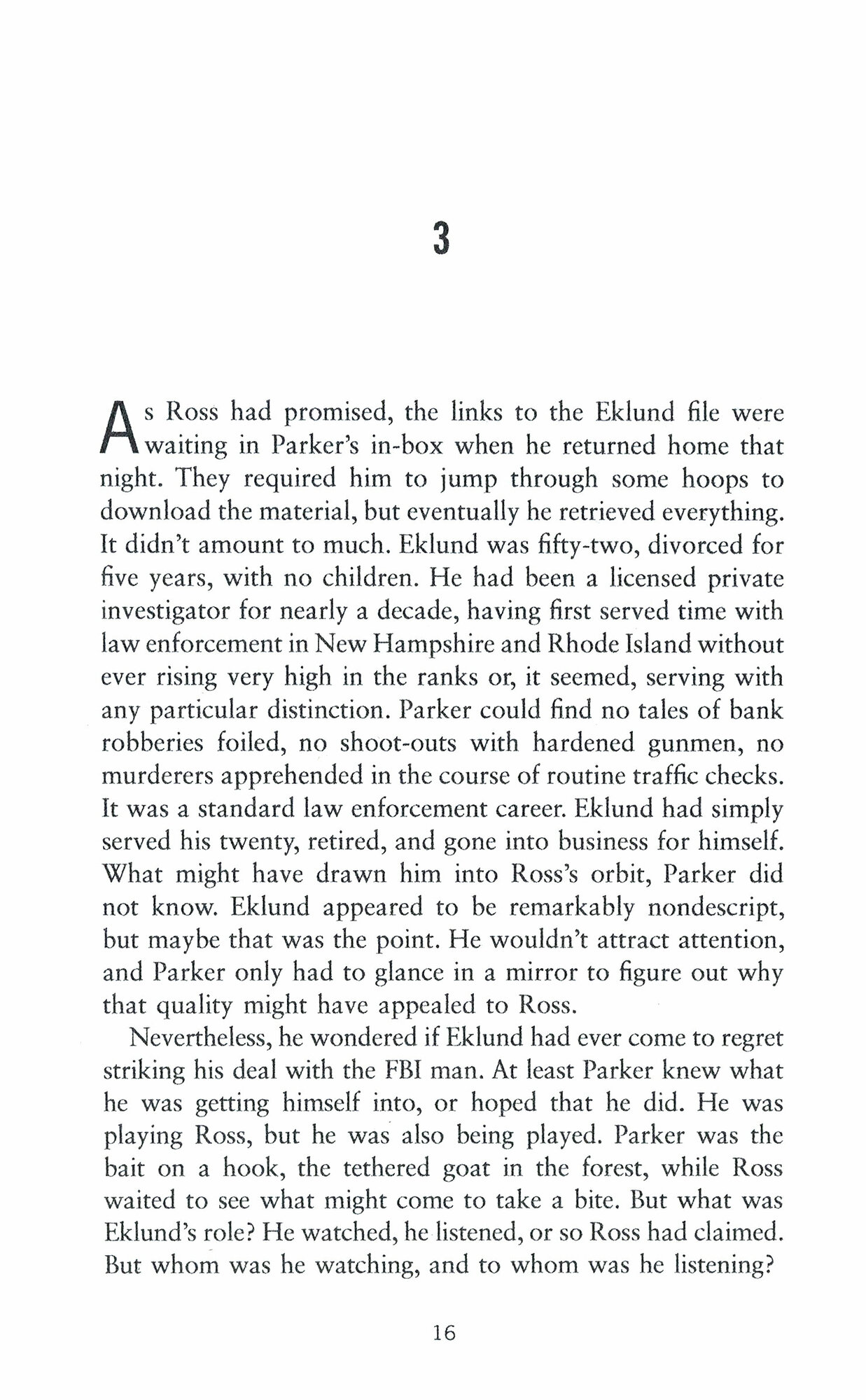 The private detective named Jaycob Eklund has vanished, and Charlie Parker is dispatched to track him down. Parker's employer, Edgar Ross, an agent of the Federal Bureau of Investigation, has his own reasons for wanting Eklund found.