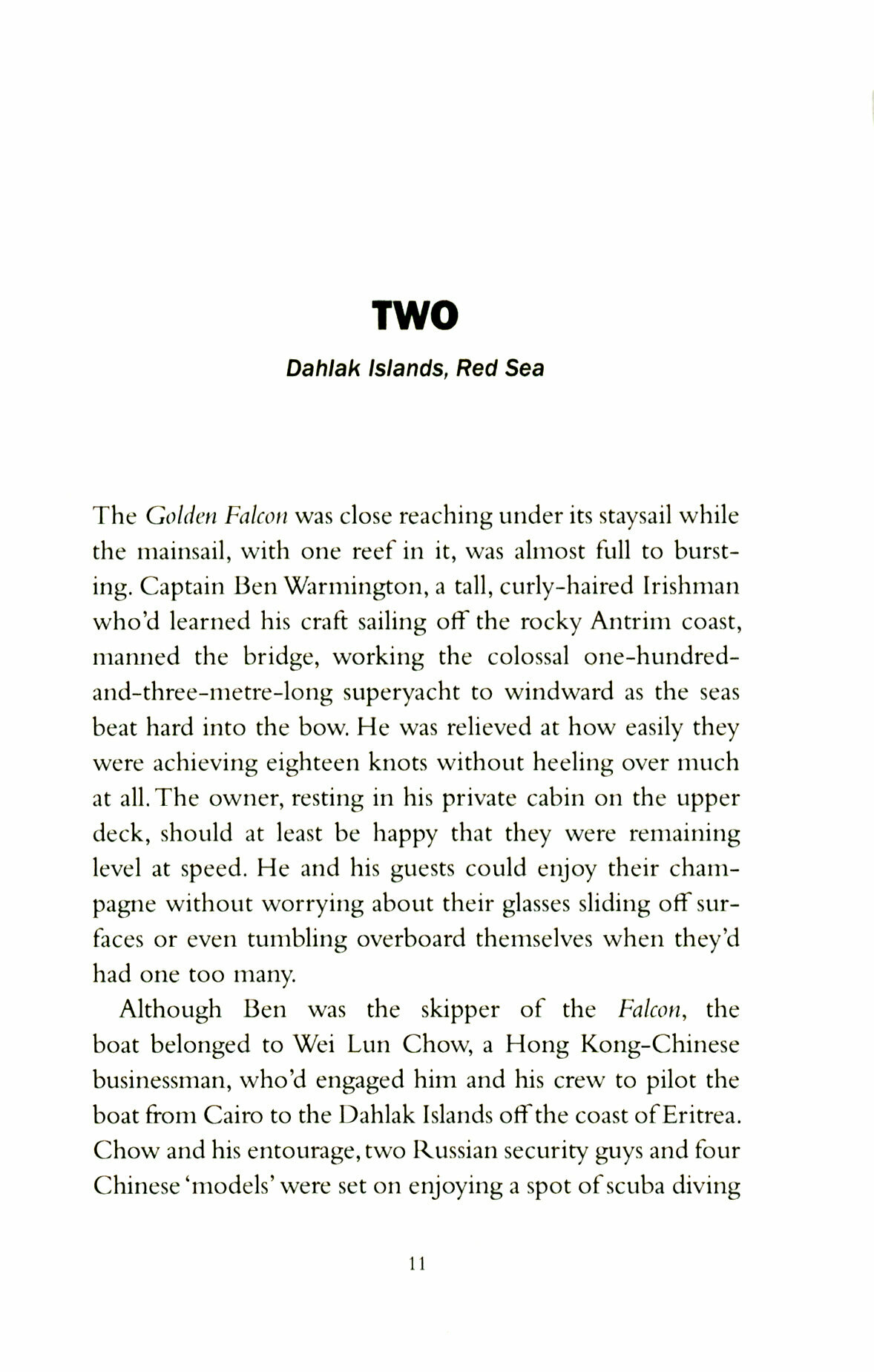 He's looking forward to meeting up with his eldest child, Jo, who has graduated naval college and taken a summer job working on a billionaire's yacht in the Red Sea. But then he receives a call informing him that Jo's boat is missing, likely abducted by Somali pirates.