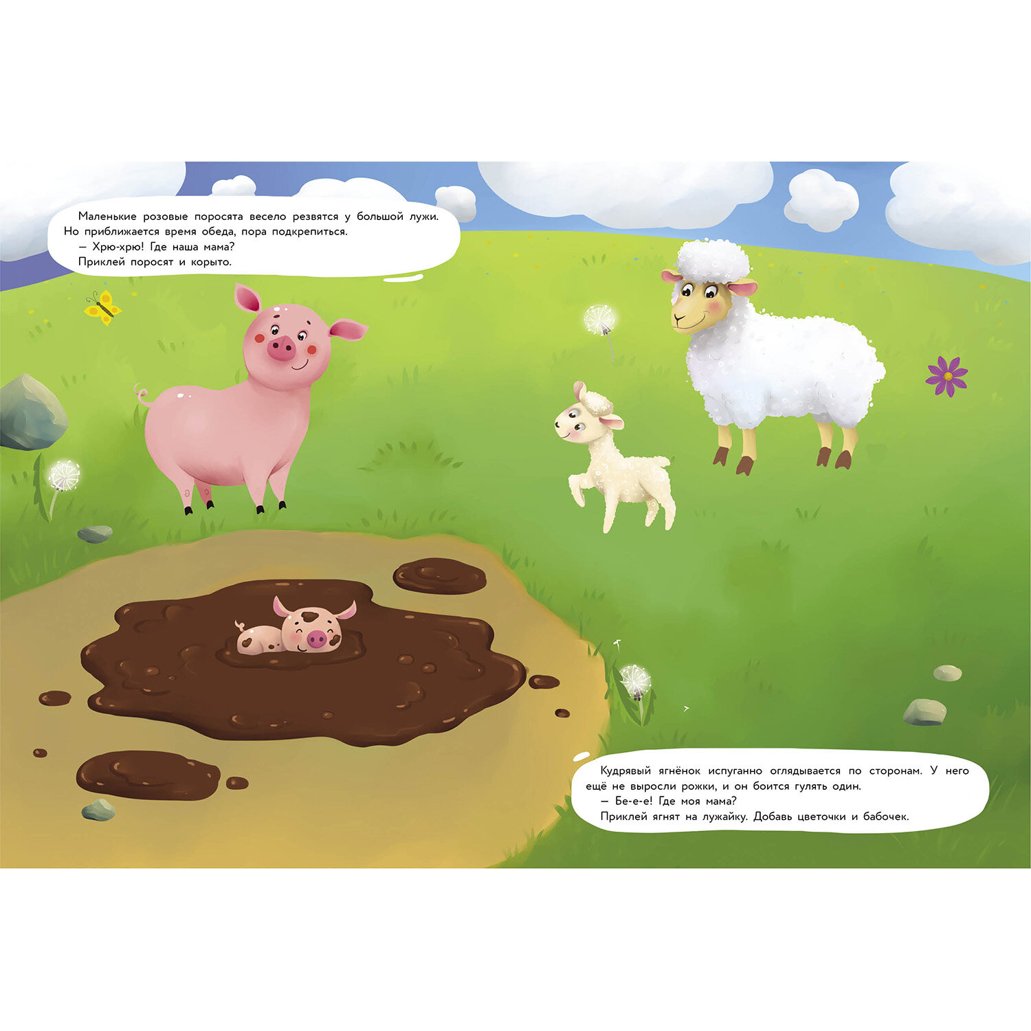 Как называют маму цыпленка? А детеныша свинки? Благодаря этой книжке ребенок узнает ответы на эти и другие вопросы о мамах и их детенышах. А еще он запомнит кто как говорит и сможет поиграть с многоразовыми наклейками. Дополните картинки так, чтобы все малыши нашли своих мам.